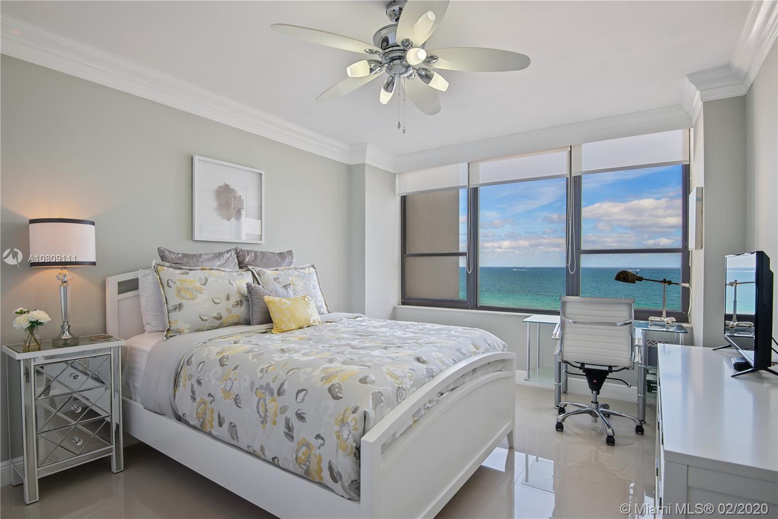Move-in today and enjoy the view or lease out immediately! Stunning 2/2, with unobstructed and protected direct east-facing ocean view from every room. Elegantly renovated in a sophisticated palate of timeless neutrals using luxury materials. Open kitchen with granite and upgraded brand new appliances including double oven. High gloss porcelain tile floors, custom kitchen and bath cabinetry, granite countertops and gorgeous tiled baths (double sink master bath). W/D in unit, new A/C and water heater. Complimentary valet parking. Oceanfront pool and resort quality amenities. 30 day minimum rentals, 12 times/yr. Convenient to exciting shopping, dining, entertainment and recreation as well as airports. Furnishings negotiable. Video link in listing, no in person showings at this time