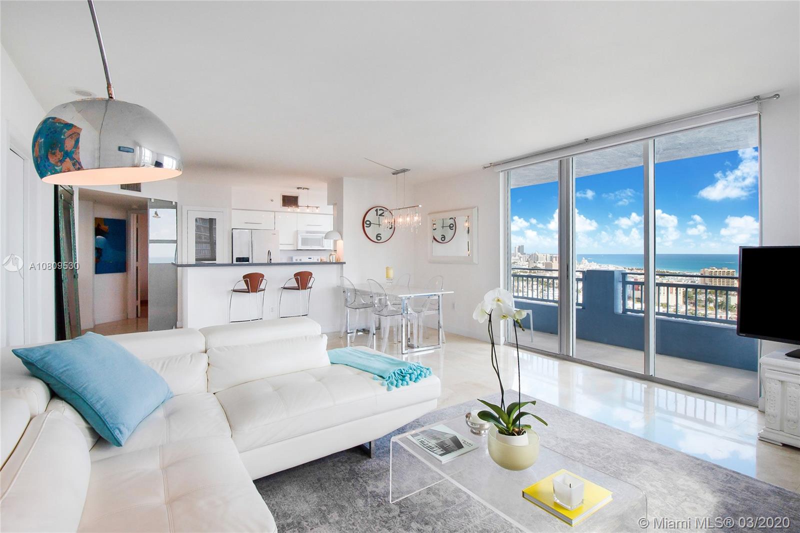 Corner unit in the most desirable location in South Point, breathtaking views of South Beach, the marina and Fisher Island overseeing the beach. Morning sunrise views. Direct access to the South Beach Marina and South Point Park, walking distance to the beach and local top area restaurants and fashionable cafés. Two bedrooms suites unit with California closets, completely renovated kitchen and bathrooms, Travertine marble and bamboo floors.