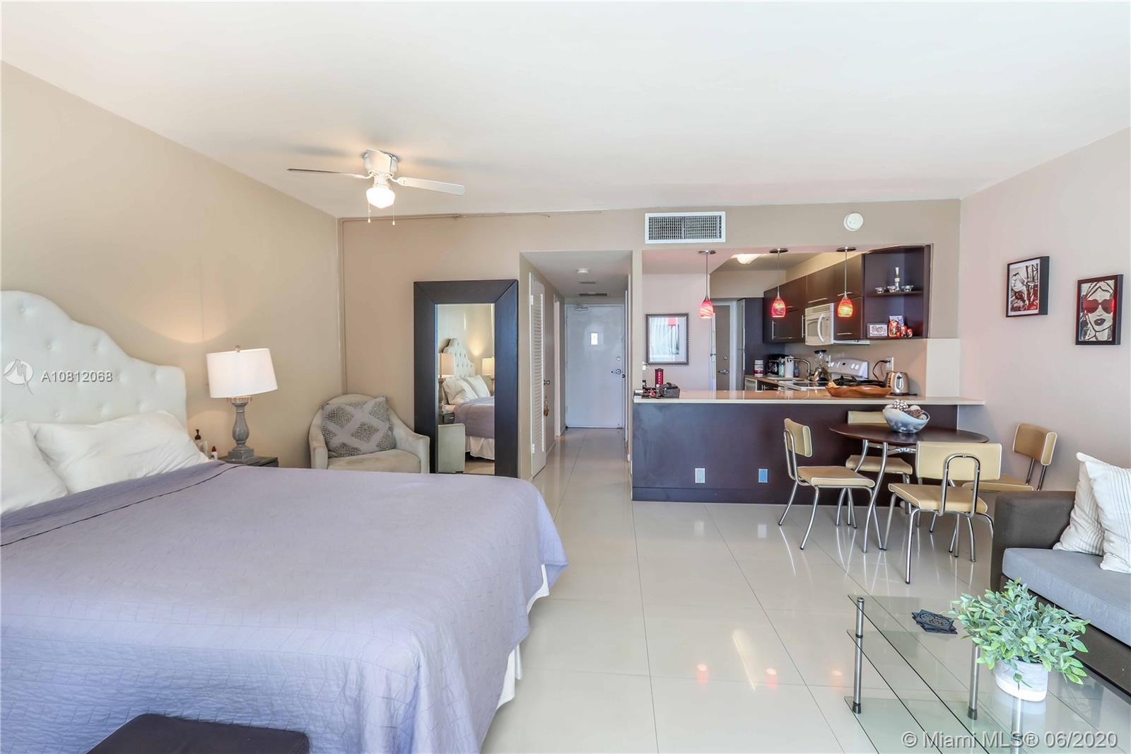 Beautifully remodeled studio at Mirador North with spectacular bay views. This unit has porcelain tile floors throughout, open kitchen floor plan with quartz counter tops, nice size balcony, and some of the best amenities offered on West Ave. The Mirador is located in one of the best areas in Miami Beach, with a large swimming pool, spa/Jacuzzi, state of the art fitness center, 24 hour valet, 24 hour security, game room, business center, a convenient store and much more.