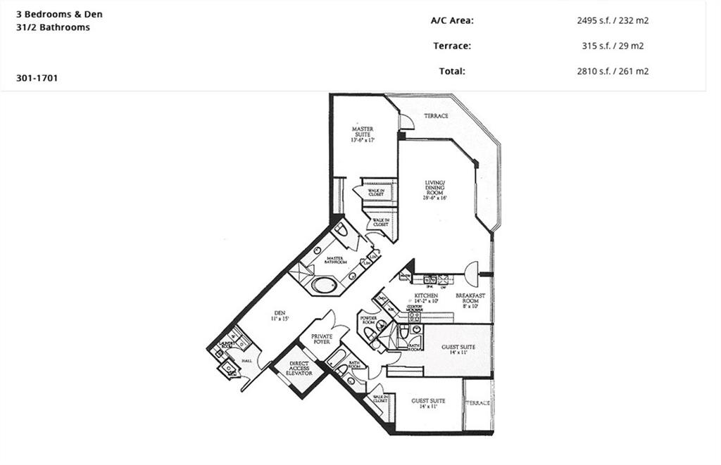 TWO PARKING SPOTS INCLUDED! Wow...that's what you'll say when you step off of the semi-private elevator into this gorgeous 14th floor unit. The ocean views fill the rooms with natural light. This 3 bed/3.5 bath + office apartment features marble and wood flooring, impact windows and tastefully updated kitchen and baths. The kitchen has ample storage, Subzero & Bosch appliances and a wine cooler. It opens up to the living room and dining area so you can enjoy the view and be part of the conversation. The master bedroom has a big walk-in and two other closets for him and her. And you'll find floor to ceiling built in cabinets in the office.You'll find electric shades in the living and master bedroom. Original owner. Impeccably maintained. Move in ready. Furniture negotiable.