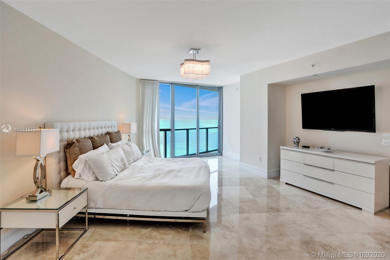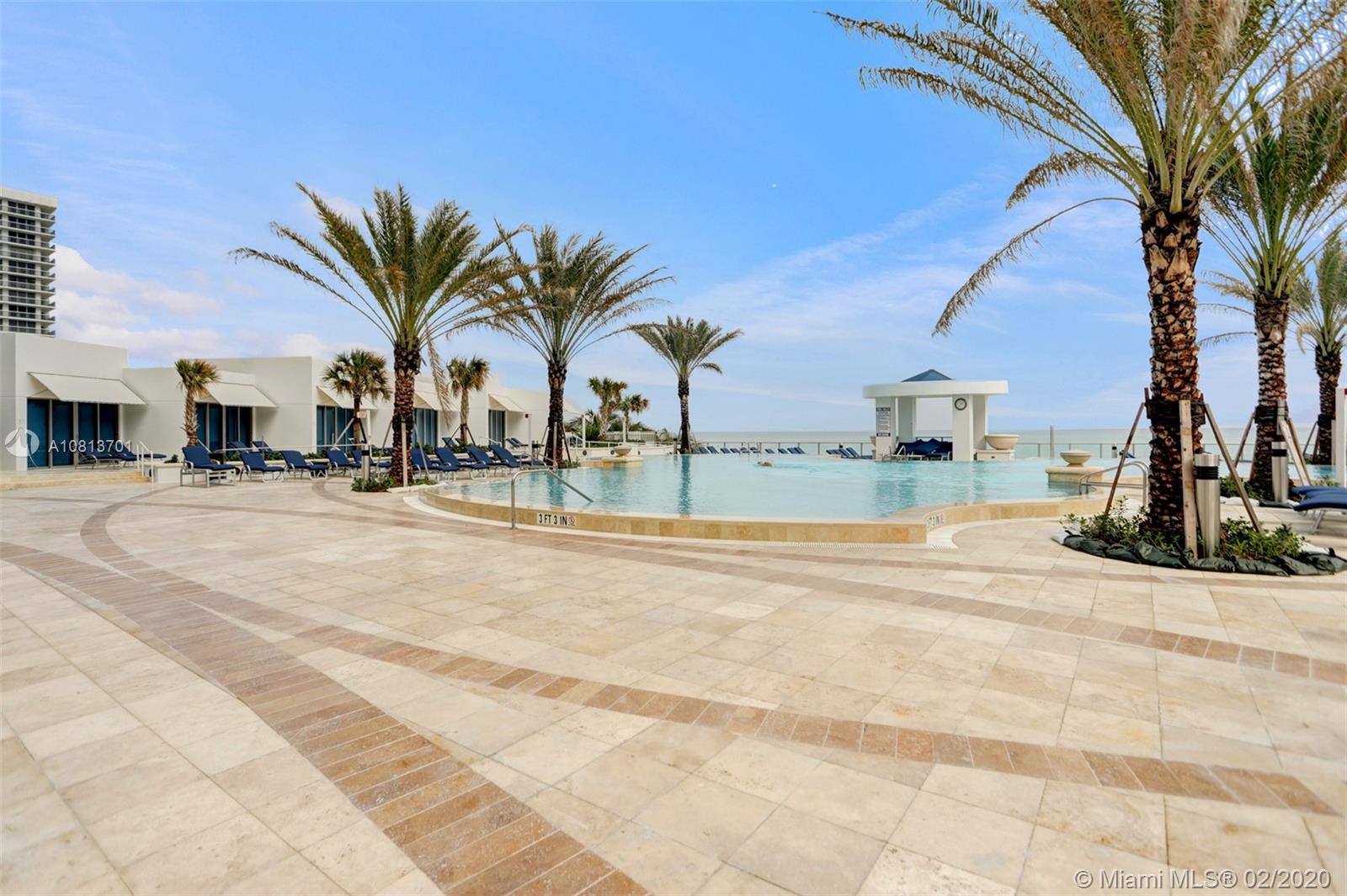 Incredible opportunity to own a luxurious villa in the sky on high 20th floor. Step off a private elevator through double doors into this large flow-thru condo with oversized North and South balconies. Panoramic ocean and Intracoastal views from every room through floor-to-ceiling glass. Beautifully finished with marble floors, granite counters, Italian cabinetry, high-end appliances, custom backsplash, Jacuzzi tub, frameless glass shower and built-in closets. Two parking spaces by elevator. Ocean Palms is a majestic and modern tower located on 240 feet of beautiful Hollywood Beach. The five-star amenities include a two-story fitness center, spa with sauna and massage rooms, media room, party room, billiard room, ocean-side pool, hot tub, and tennis courts.