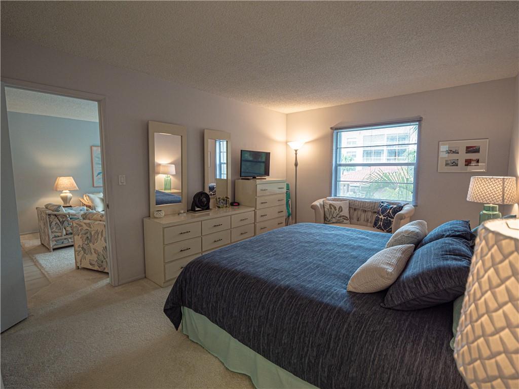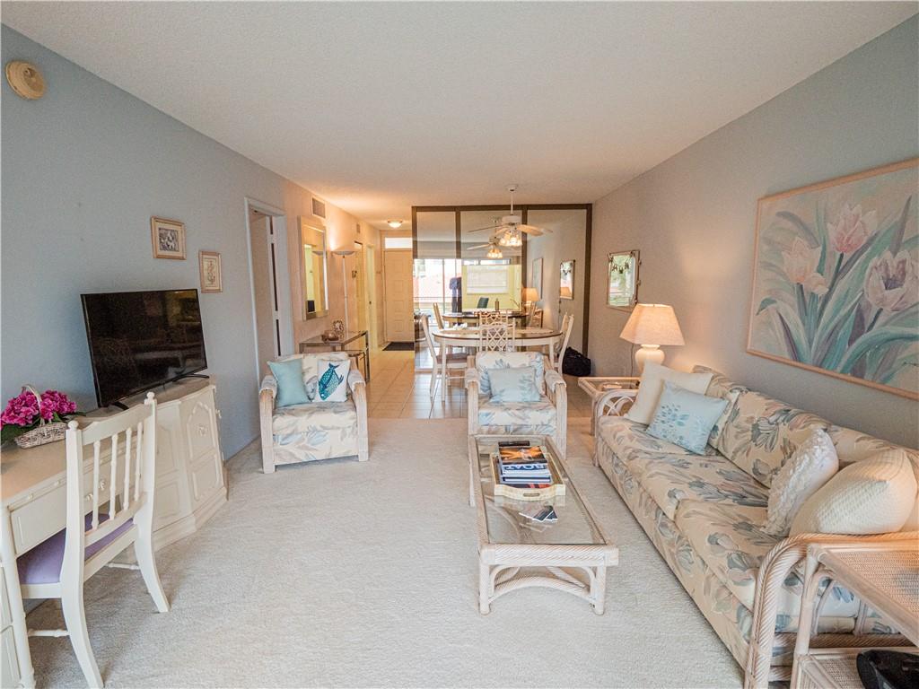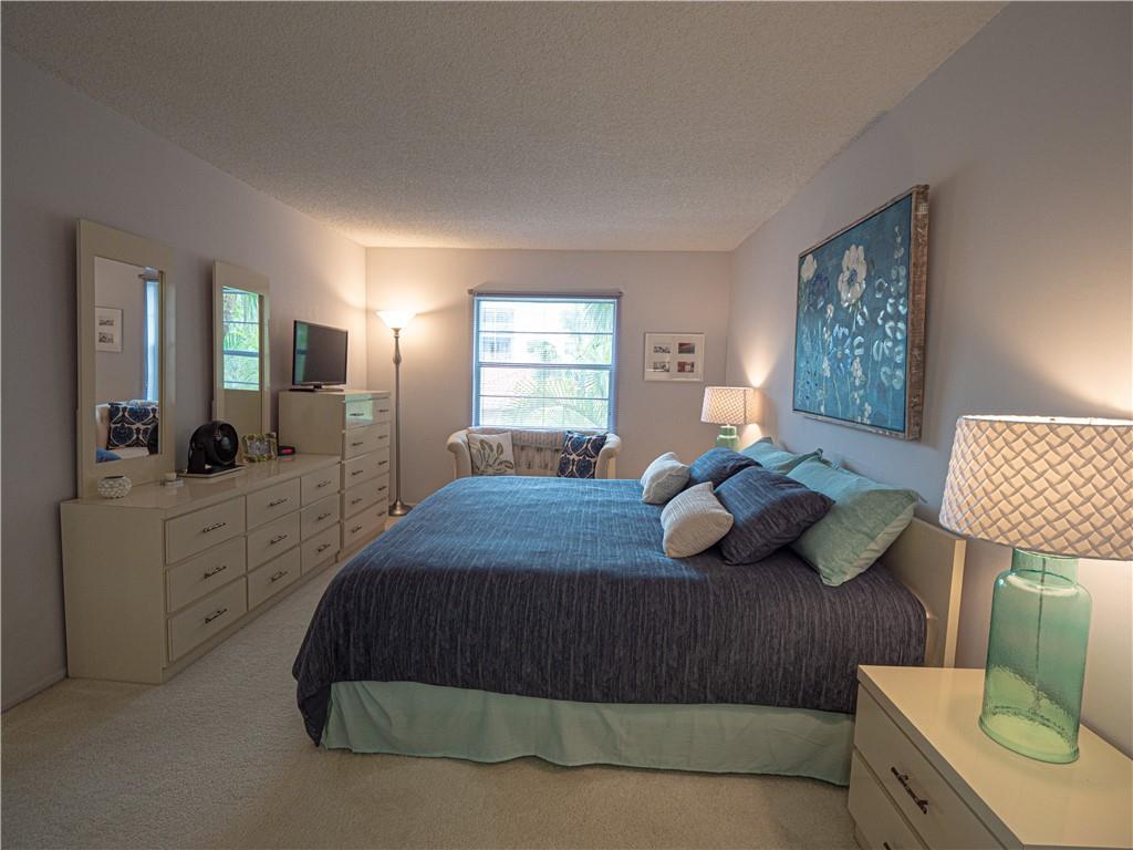 ACROSS THE STREET FROM THE BEACH - charming, very clean, 1 bed, 1.5 baths, dishwasher, beautiful pool and garden views from the balcony. PERFECTLY LOCATED: walking distance to shops, pubs, restaurants, grocery store and fishing piers. PARKING: two assigned spaces, guest parking. PET FRIENDLY: 2 pets up to 30lbs. RENTAL POLICY: rent immediately, 12 times per year, 30 days min. AMENITIES: gated community, pool, shuffleboard, grilling area, storage room. Watch the video tour. Easy to see!
