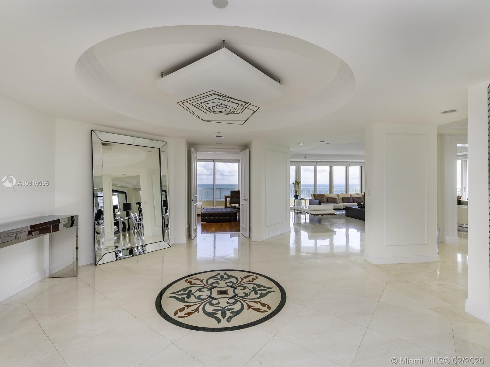 CASUAL ELEGANCE describes this 5,207 sq. ft., right-smack-on-the-beach and reconfigured to perfection, Mansion in the Sky. Sweeping views of beach. Expansive living room, dining room, kitchen, terraces and family areas flow together for gracious entertaining. Four bedrooms en-suite plus library and staff quarters. Also includes a wine cellar, fur storage room and four garage spaces. Ocean Club is a full service building with Tennis, Spa, Valet and Private Concierge service round the clock.