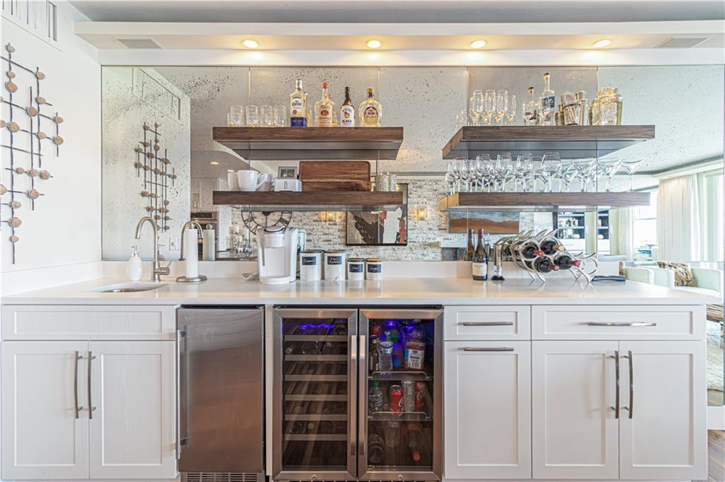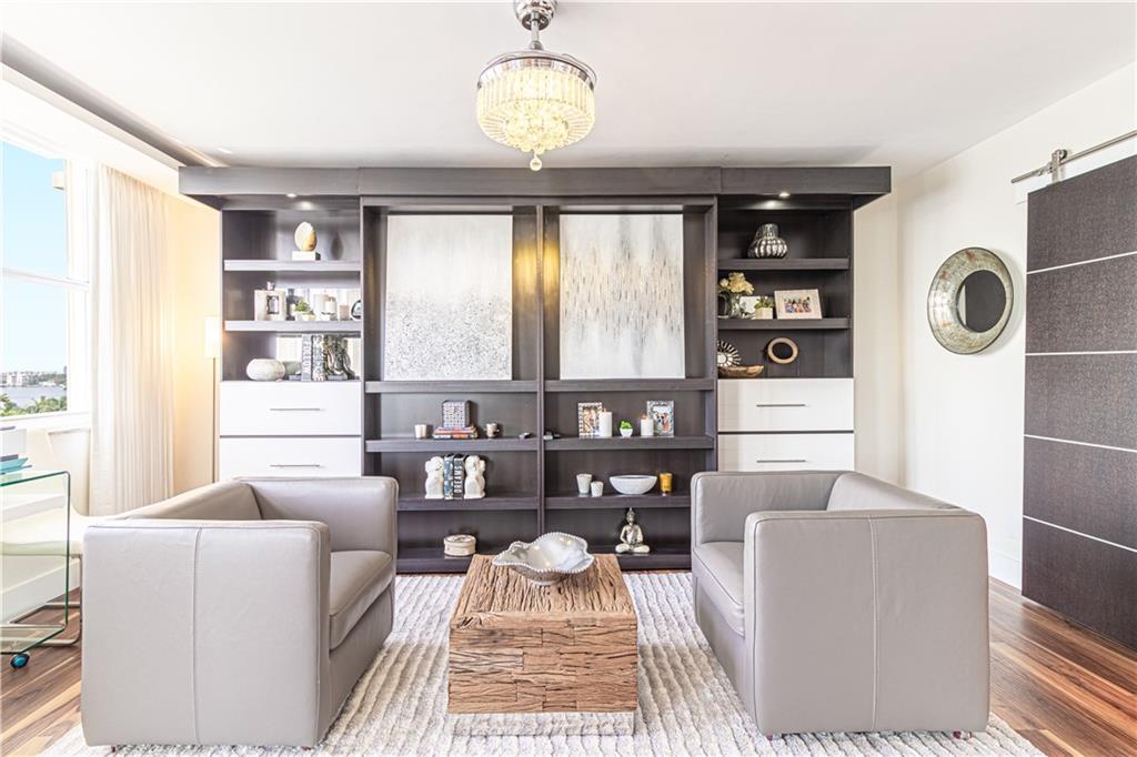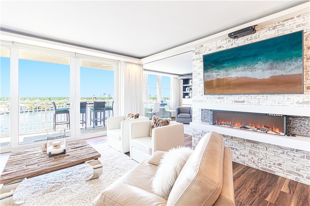 An Amazing redesign, turning this 3 bedroom 3 bathroom unit, into a versatile floor plan that opens living space for entertaining, or transforming back to its original plan with ease, through custom sliding glass walls that provide a panoramic view of the Intracoastal. Completely redone! Everything feels brand new, from the kitchen cabinetry, appliances, custom bar, all bathrooms, flooring throughout, lighting, sound system, fire places, accent walls, built ins, bar with wine cooler and ice maker, window treatments and much more. Building amenities include club room, billiard room, kitchen facilities, fitness center, heated pool, saunas, BBQ grills, & roof top sun deck. Wide Water views of the Intracoastal, ocean and downtown Fort Lauderdale. Walk to the beach!