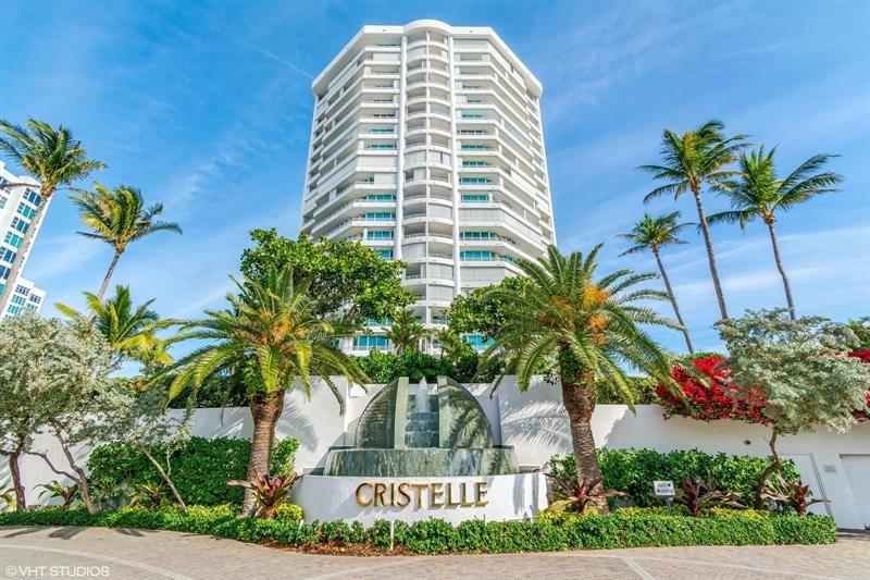 Direct ocean views! Cristelle is luxury beachfront condominium located in Lauderdale By The Sea. Wait until you see the unbelievable ocean views having a NE exposure from your wrap around balcony. Spacious 3200 SF split floor plan having three bedrooms, three full baths and views from all rooms.Tastefully decorated with custom built-ins featuring a bar area w/ wine chiller and refrigerator. Beautiful wood flooring throughout all the main living areas.Bright White kitchen has brand new SS Refrigerator, Granite counters and breakfast nook overlooking the ocean. Spacious master bedroom with marble master bath having dual vanities, jetted tub, separate shower and water closet with bidet. Private ocean access, heated pool, tennis, exercise room. 2 parking spots in covered garage. Pet friendly.