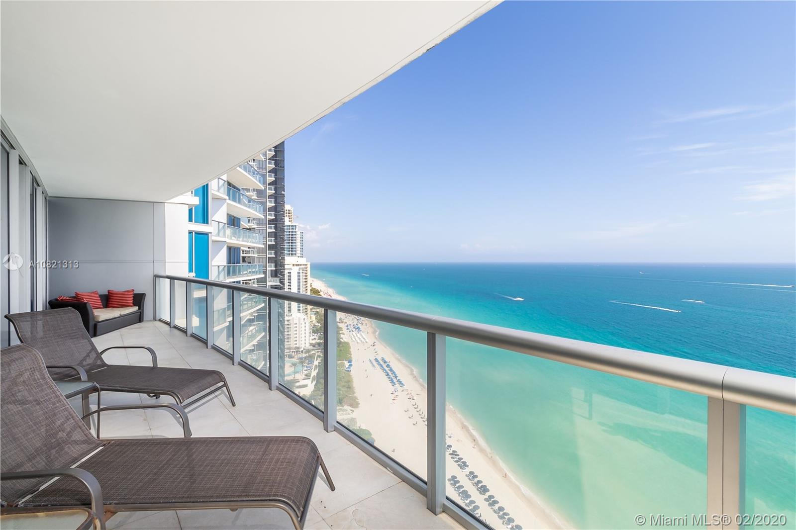 Unit features private elevator which leads you to high-end 3 BED/ 3 Full Baths unit that offers 2 assigned parking spaces . Units Floor-to-ceiling impact windows throughout leads to breathtaking unobstructed Ocean views with one of the largest most sought after balconies in the building. Condo features the SMART home technology allowing full automation of temperature, lighting ,blinds and sound. The Fully equipped kitchen with granite counter tops, marble and Mile and Subzero appliances are another top feature to enjoy from this decorator done unit with exotic wood floors throughout. Exclusive amenities: Sun Rise Pool, Sun Set Pool, Children's Room, Social Lounge Room, Pool Deck Bar, Business Center, Game & Media Room, Gym & Spa. Water, basic cable & internet are included .