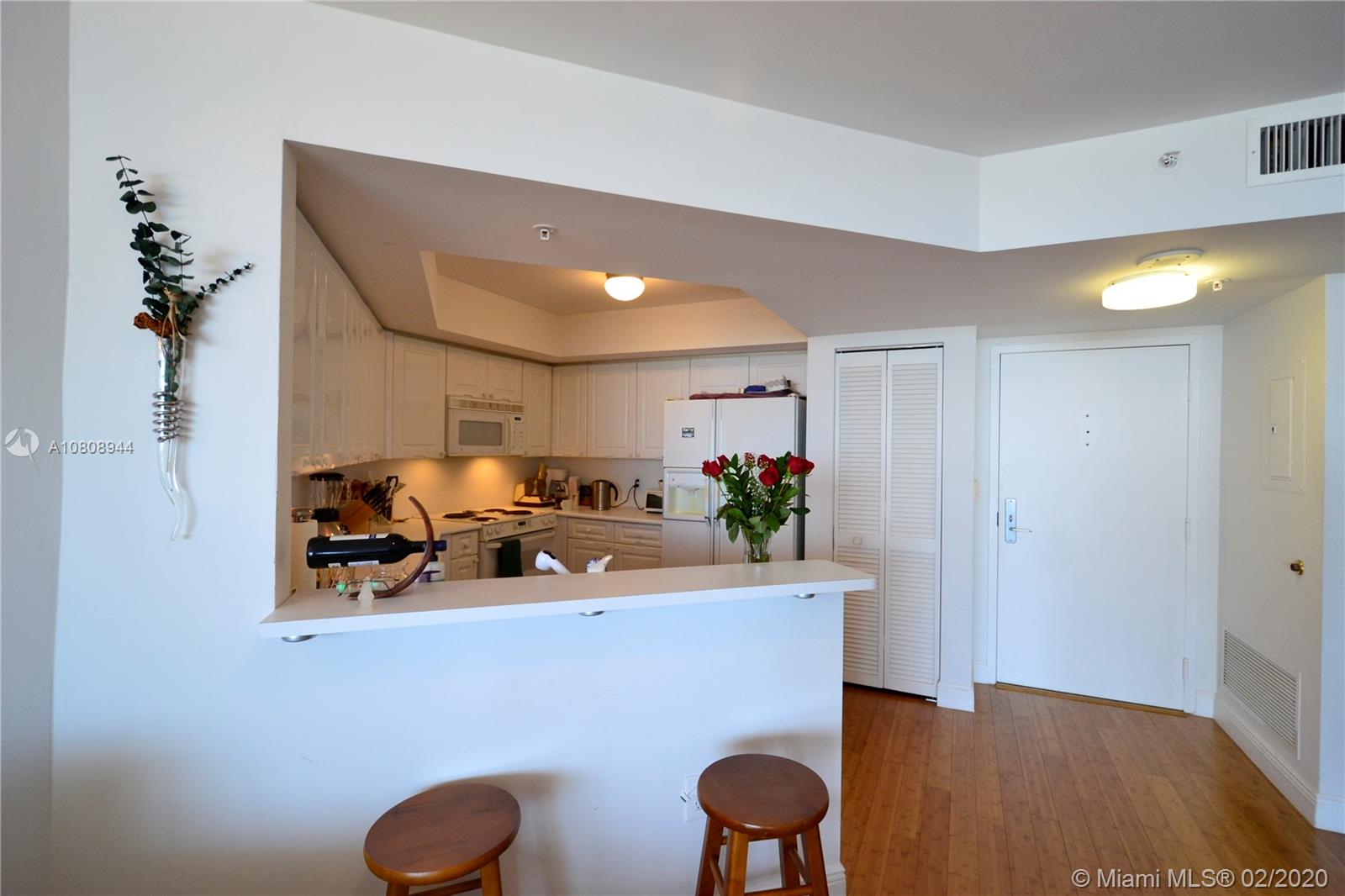 Highly desirable NE corner unit with amazing bay and ocean views from this 21st floor Sunset Harbour North condo with wonderful open floor plan and TWO private balconies. Bamboo wood floors throughout living and bedroom areas. Sunset Harbour is SoBe's booming "locals neighborhood," filled w/ amazing restaurants, upscale retail, Fresh Market, Publix, Trader Joes, health clubs, water sports, yacht club, boat ramp and more. Full service building with 24 hour concierge, valet, security, gym, sauna, club room and 2 pools. NEED MORE SPACE? Combine this unit with unit next door to create expansive 2300+ square feet home!