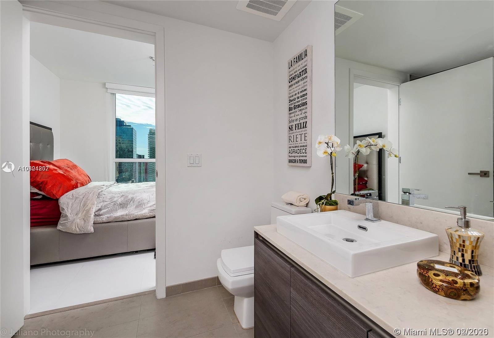 Amazing Bay and city views in the heart of Brickell, spectacular 2 Bedrooms, 2 Baths unit, it features a large master walk-in closet, shades and black outs, open kitchen with Bosch appliances and high-end Nolte cabinets handcrafted in Germany. It can be rented 12 times per year. Best option to either live or invest. Amenities include a resort style pool, children’s room, fitness center, spa, library, business center and much more.