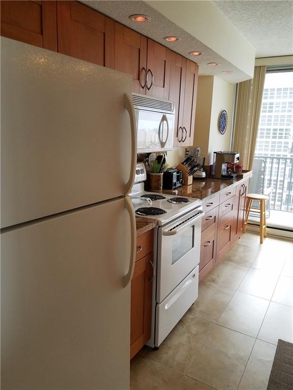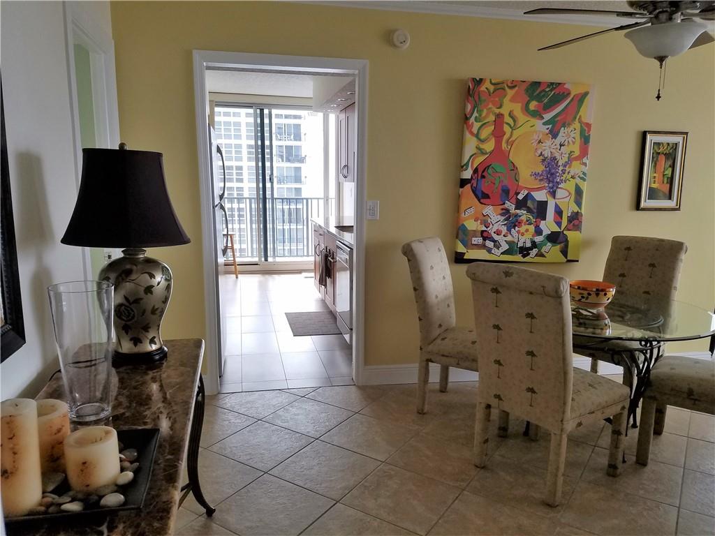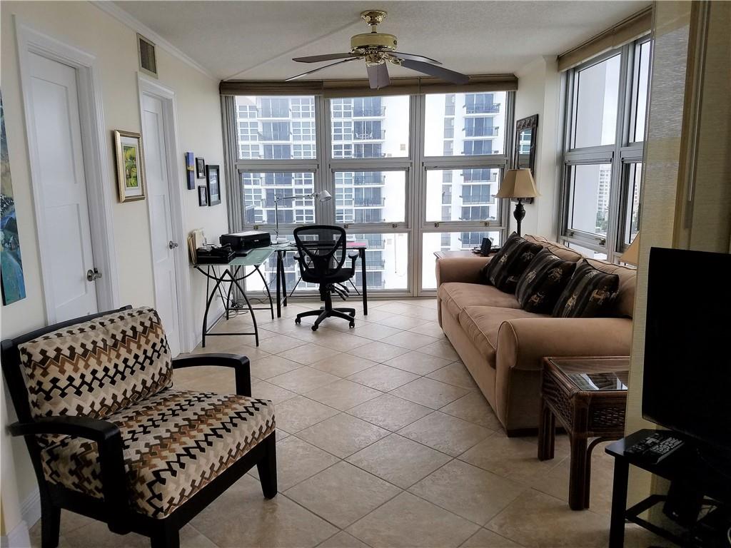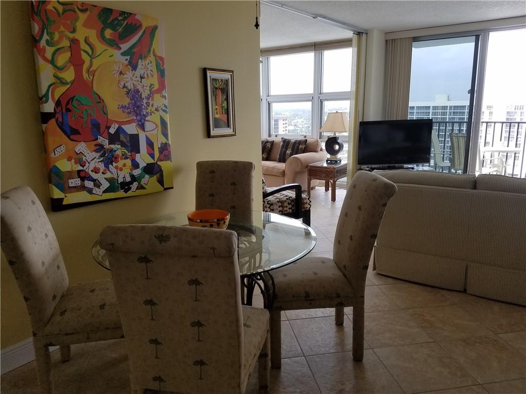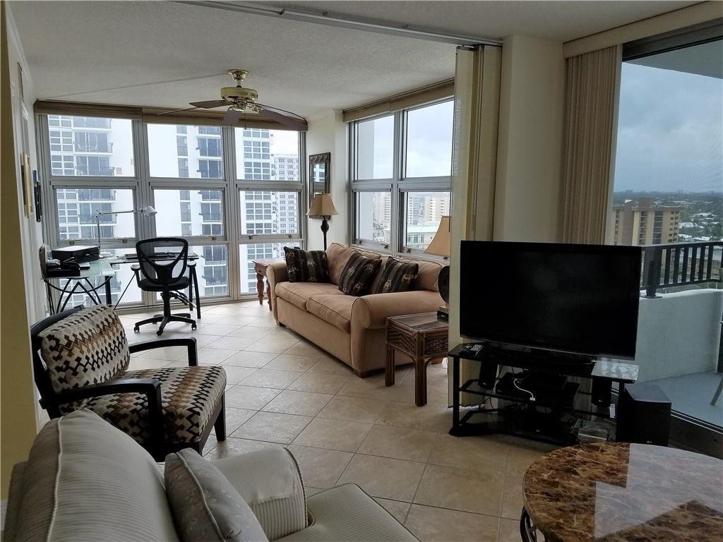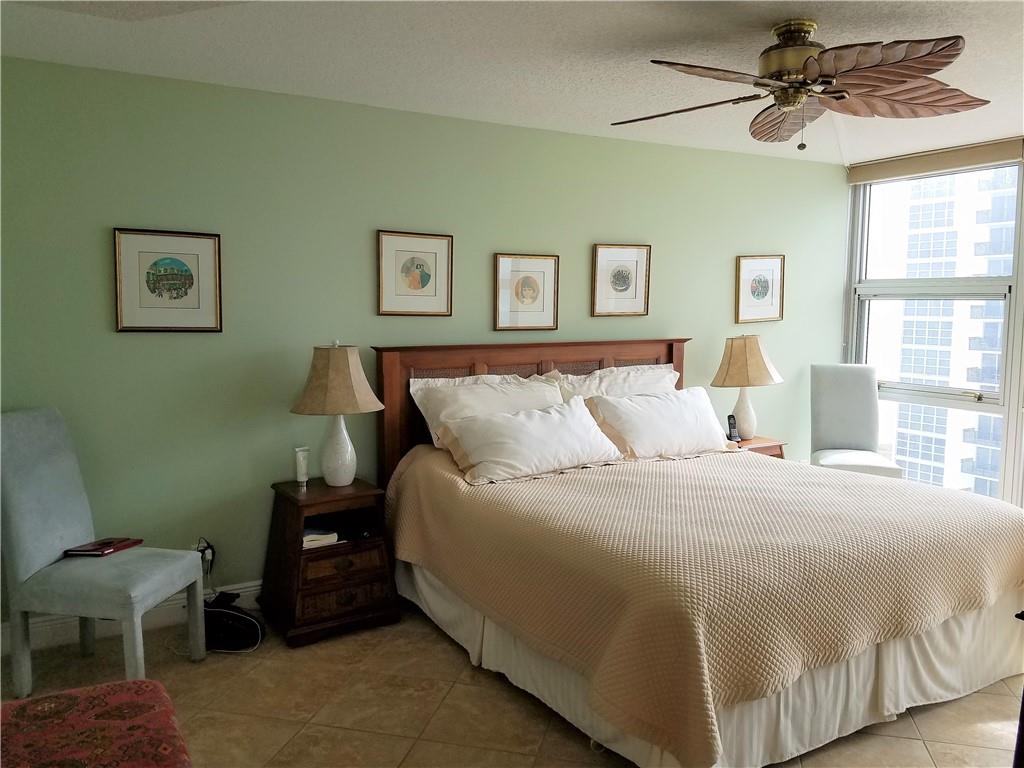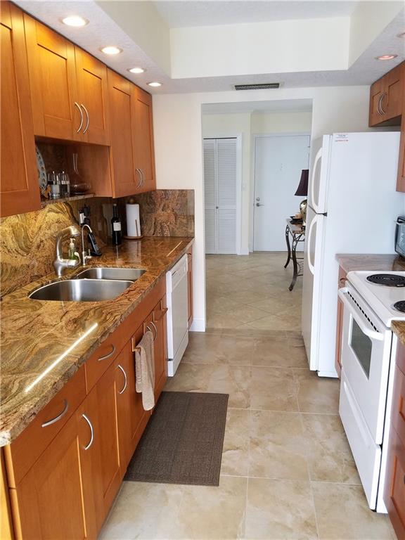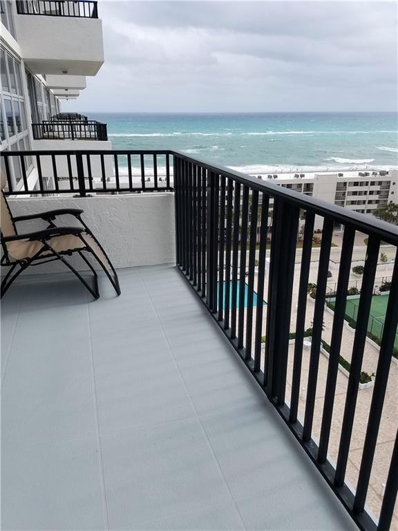 This two bedroom, two bath unit is Totally modern & gorgeous, with amazing views of ocean & Intracoastal/city from two private balconies, one facing SE & the other facing West. Watch the sunrise & sunset from this beautiful unit. Remodeled kitchen with new refrigerator, granite counter tops, stainless steel appliances. Brand new water heater. Completely & beautifully tiled throughout. Second bedroom is set up as a den with work area, desk and sleeper sofa with walk in closet. Large Master bedroom has king size bed & large walk in closet. Garage parking. Building amenities include two pools, tennis court, exercise rooms, sauna, game room, 24/7 security desk... all just steps away from amazing wide white sand beach. Walk to newly renovated pier, beachfront restaurants & shopping.