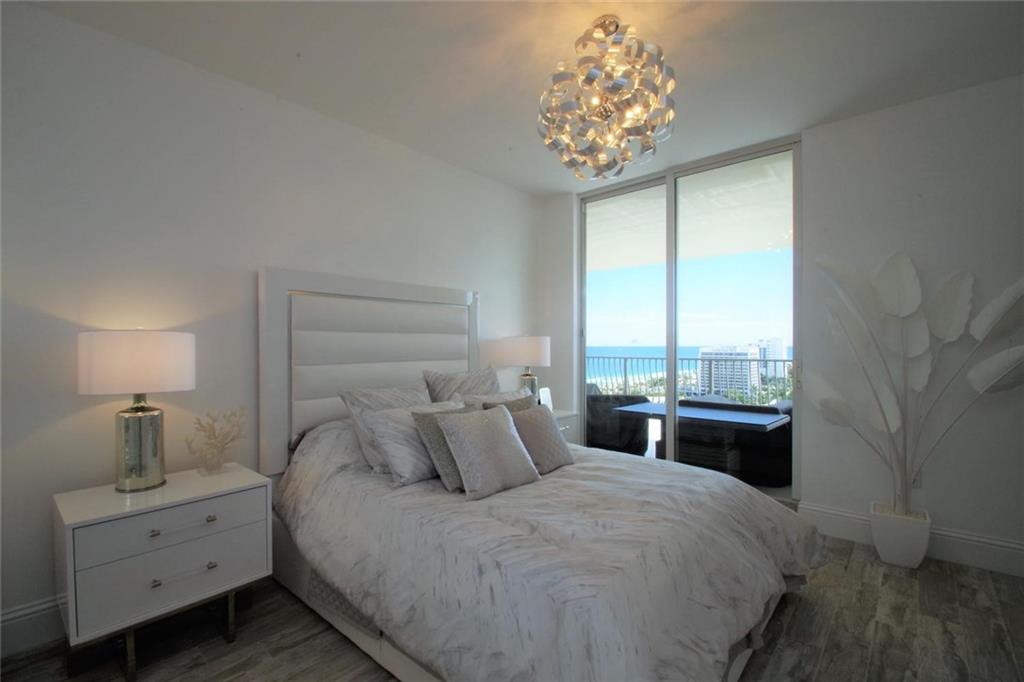 Stunningly re-imagined unit with the best views in the building. South-facing, with an oversized balcony, watch the sun rise over the ocean and set over downtown. Look down the ICW to the ships in Port Everglades. The large format porcelain floors carry through the main rooms and right on to the balcony. The 3 large bedrooms are set with amazing wood-look tile in grey and white hues. Chef's kitchen opens to a spacious Living room with floor-to-ceiling glass. Luxurious lighting appointments add to the dramatic décor and make this a truly turn-key unit. Best parking spot in the building. When the elevator doors open into this one-of-a-kind unit you will know you have found your next home. Make an appointment today and enjoy this unit now!