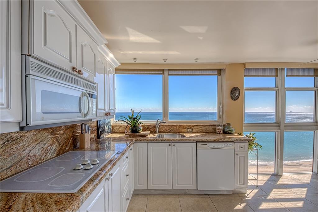 Rarely Available! This DIRECT OCEANFRONT SE Corner Unit w/ wrap around balcony boasts spectacular unobstructed Ocean views through FLOOR to CEILING IMPACT WINDOWS. Unit is fashionably updated with onyx tiled bathrooms, tile flooring and crown molding thru-out, granite countertops & more. Split bedroom plan and WASHER / DRYER in unit. Enjoy resort style living; 24 hour security, tennis/pickle ball court, sauna, heated pool / hot tub, his & her gyms & Garage Parking for 2 cars are just a few of the amenities. Entertain friends in the Sky Lounge with Panoramic views of the Coast and Skyline located on the 29th floor. Low monthly maintenance even includes Internet and cable. Well managed building with reserves. Furniture / furnishings negotiable. Easy to show, agent lives in building.