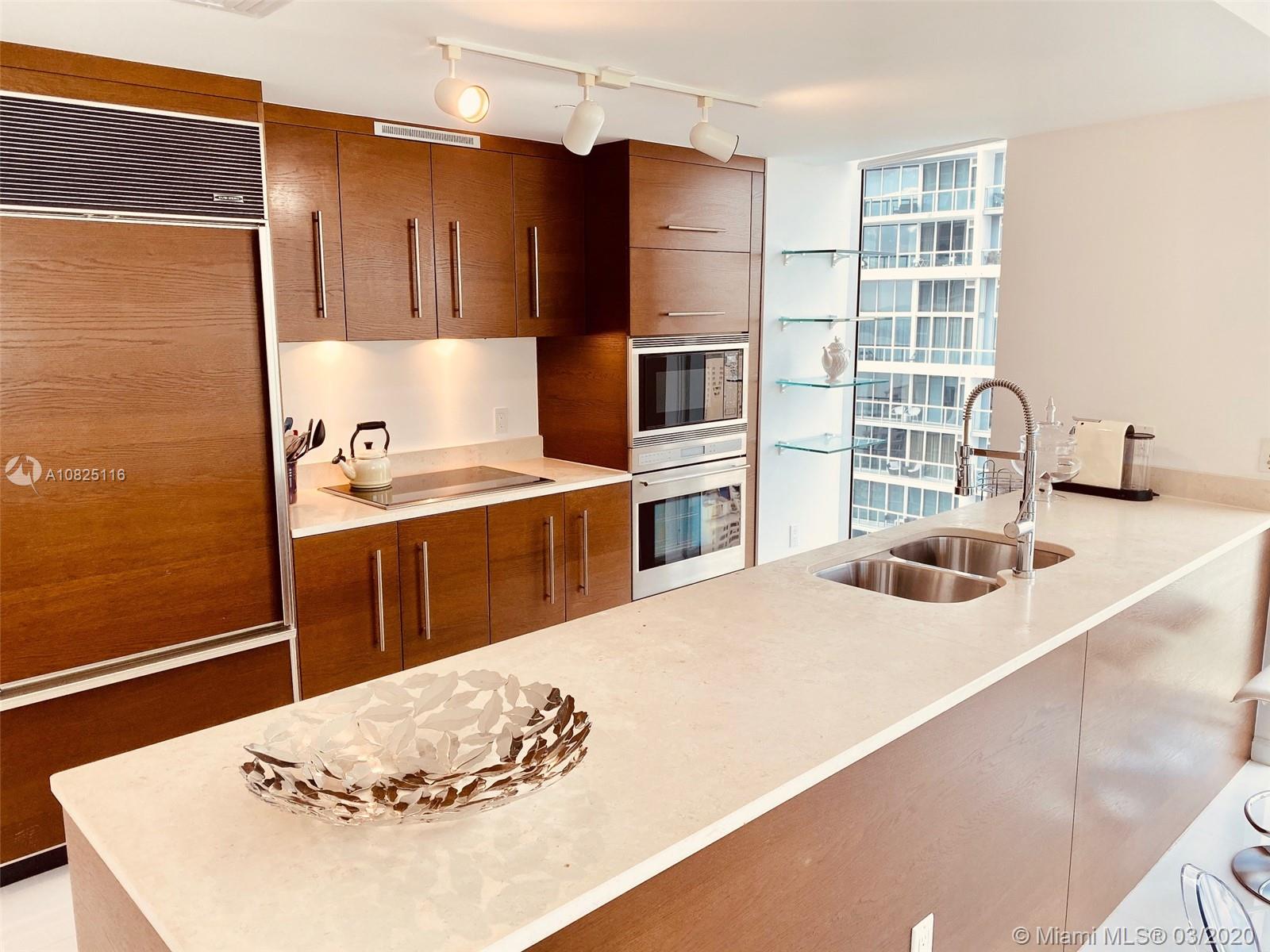 STUNNING CORNER UNIT WITH AMAZING VIEWS TO THE CITY, THE MIAMI RIVER, PORT OF MIAMI AND THE OCEAN. LIGHT-FILLED RESIDENCE IN THE SKY WITH BREATHTAKING VIEWS. OPEN CONCEPT CONTEMPORARY SPLIT FLOOR PLAN FEATURING A LIVING ROOM WITH A CONVENIENT BREAKFAST BAR. EUROPEAN CUSTOM CABINETRY, WITH QUARTZ COUNTERTOPS AND SUB-ZERO FULLY INTEGRATED REFRIGERATOR-FREEZER WITH CABINETRY MATCHING FRONT PANELS. WHITE PORCELAIN FLOORS THROUGHOUT THE RESIDENCE, WINDOW TREATMENT IN EVERY ROOM AND CUSTOM MADE CLOSETS.