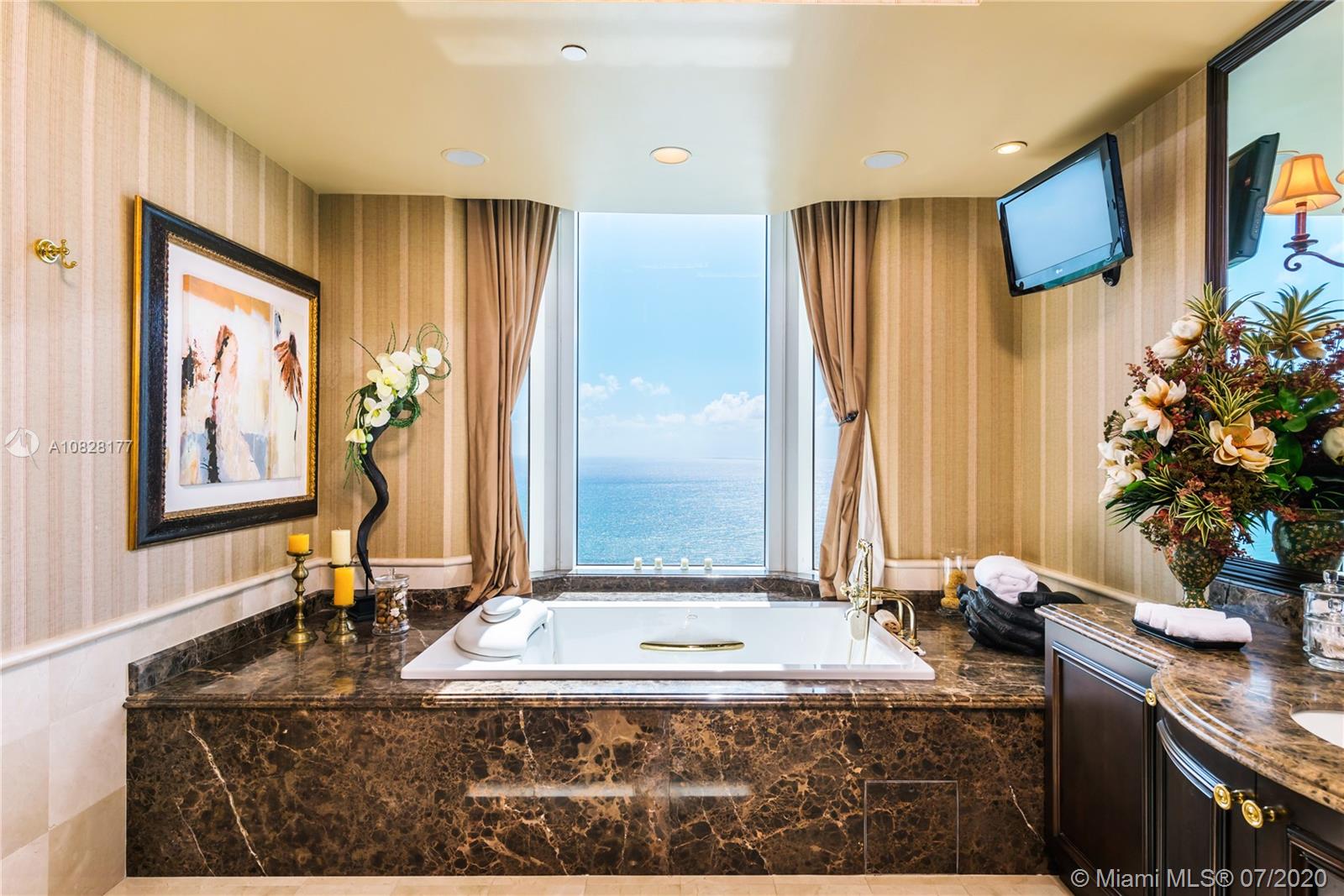 Luxurious Penthouse Apartment located in the Exclusive 5 Diamond Acqualina Residence & Resort, Sunny Isles Beach FL. Featuring top of the line appliances, custom cabinetry and closets, 5 bed, full guest suite, 6.5 bath PH, HUGE living room, eat in kitchen, family room & staff room all professionally designed and decorated by Steve G. Magnificent wrap around terraces with breathtaking ocean and intra-coastal views. Five Star amenities for you to enjoy, fabulous restaurants, lavish Acqualina Spa by ESPA, 3 crystal clear pools with pool side service, poolside restaurant & bar, plus room service available to your unit. Your Hotel Home