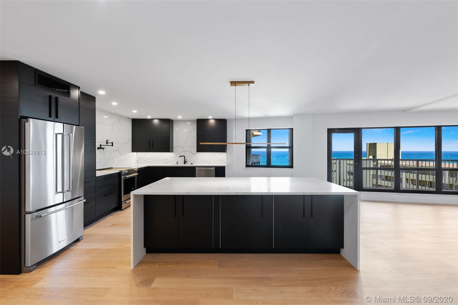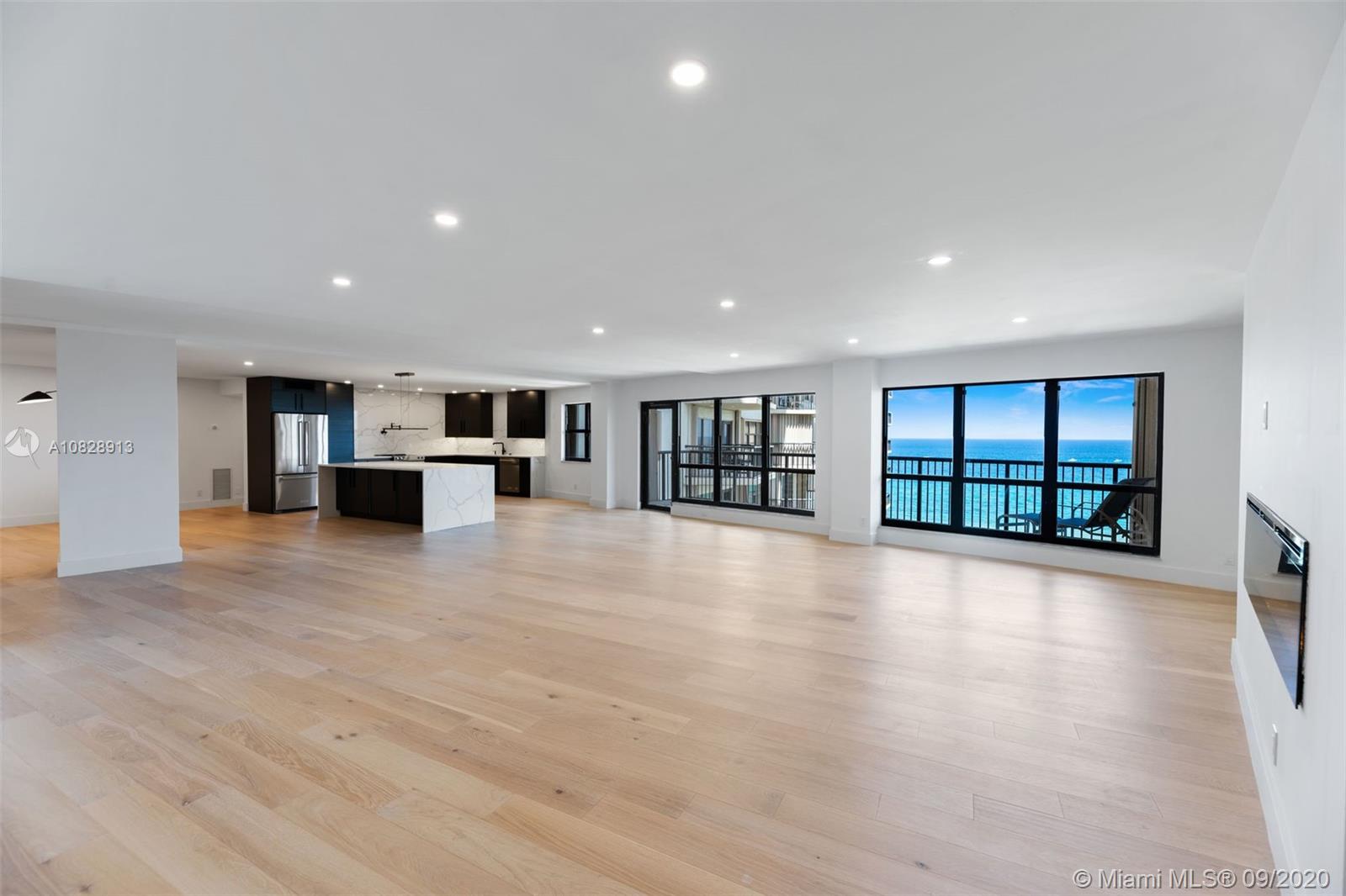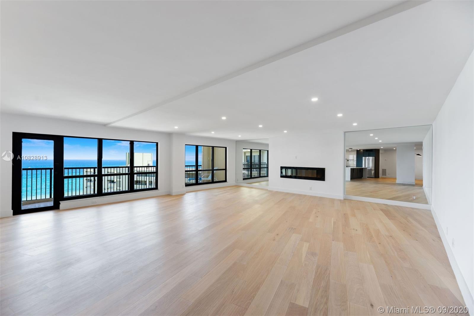 IMMEDIATE! PLENTY OF ROOM AND SUNSHINE FOR EVERYONE. COMPLETELY REMODELED, DIRECT OCEANFRONT CONTEMPORARY BEAUTY! BRIGHT AND AIRY FLOW THROUGH FLOOR PLAN OFFERS DIRECT OCEANFRONT, INTRACOASTAL AND SKYLINE VIEWS. OPEN AND SPACIOUS KITCHEN, LIVING AND DINING AREA. THREE BEDROOMS WITH EN SUITE, SPLIT FLOOR PLAN, OFFICE/DEN, 3.5 BATHS. LARGE MASTER SUITE WITH SOAKING TUB, HUGH SHOWER AND DOUBLE SINKS. MARBLE COUNTER TOPS THROUGHOUT, ELECTRIC FIREPLACE, EXTRAORDINARY LIGHT FIXTURES, LAUNDRY ROOM WITH SINK AND BUILT-IN CABINETRY, ETC. OCEANFRONT HEATED POOL, TIKI HUT W/BBQ AREA, TENNIS, BOCCE, PICKLE BALL, FIRE PIT AREAS, GYM, SAUNAS, VEHICLE CAR WASH AND 24/7 SECURITY. SMALL PET WELCOME. VACANT,QUICK CLOSING. VIRTUALLY STAGED.