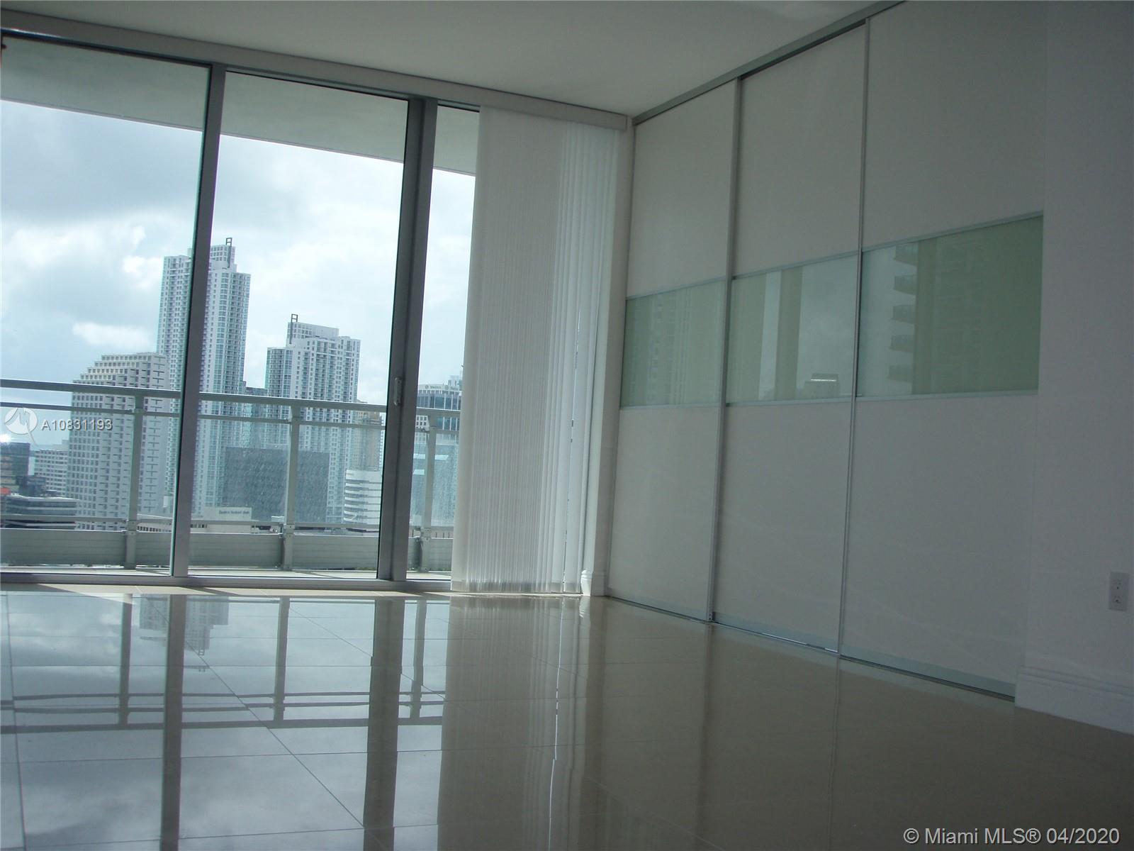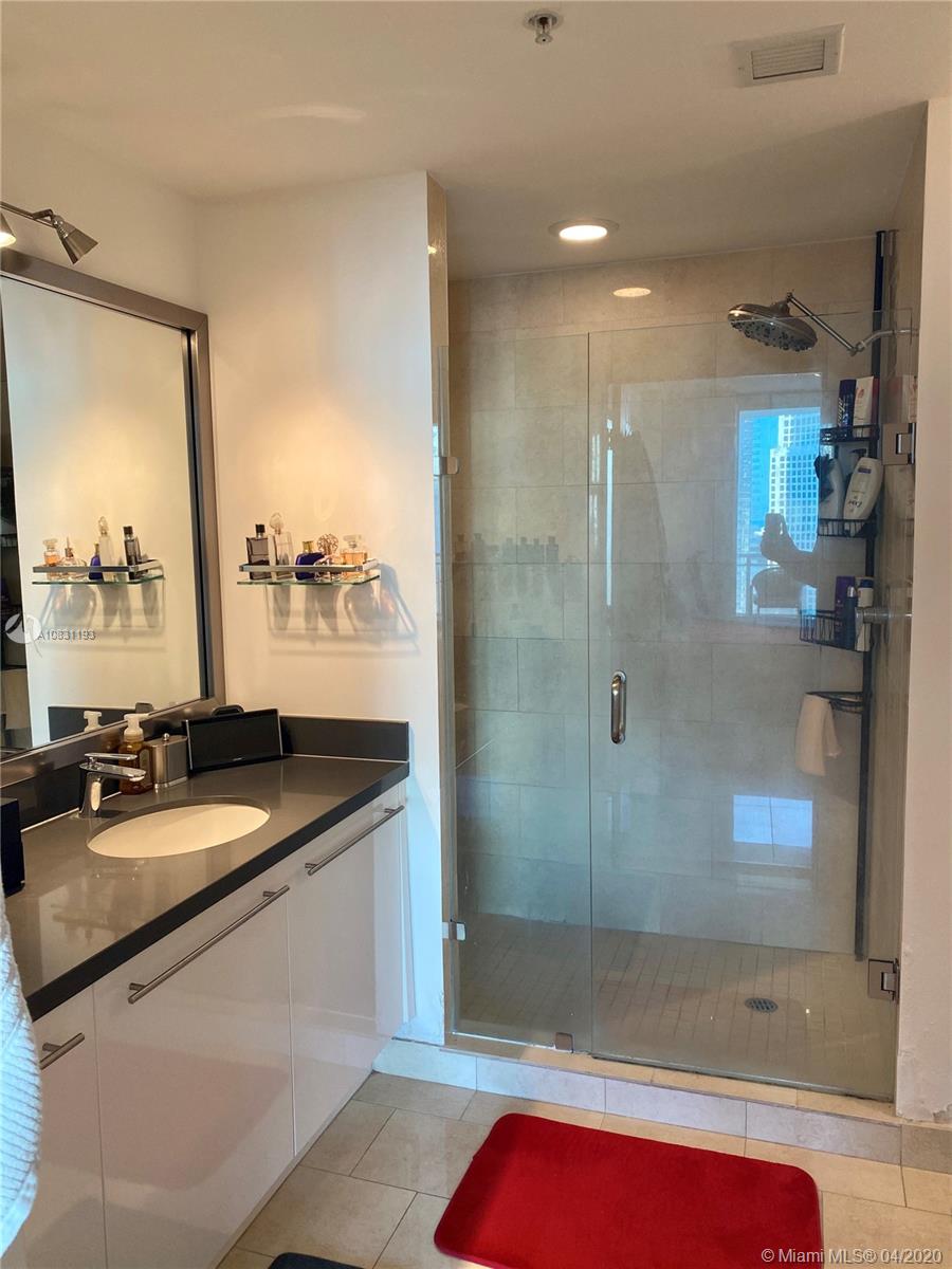 Cash offers only. Beautiful one bedroom offering one of the largest interior spaces in Brickell area with the rare addition of a guest bath as well as a large in suite master bath. Spacious bedroom with access to balcony, large walk-in closet and a separate good size closet. Large living/dining, plenty of kitchen cabinets. Stainless steal appliance complement the off white limestone counter top and brown wood cabinetry. Large open balcony with fantastic views of the Miami River and Brickell's skyline. Steps to City Center's wonderful shopping, restaurants, bars, lounges. Easy access to I-95, Metromover, Miami Airport, Miami Beach, Key Biscayne, Theaters and Museums.