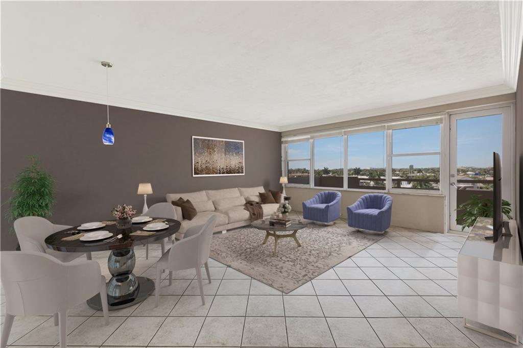 Fantastic two bedroom apartment on the Galt Ocean Mile with pleasant views of the surrounding neighborhood! New hurricane impact windows and doors installed! Central Air Conditioning. Enjoy the daily boat parade from the private clubhouse on the Intracoastal. Located in a delightful neighborhood. Walking distance to water taxi, post office, the beach, grocery store and restaurants. This is a financially secure / well managed building. Association states one buyer must be 55 plus, no pets or rentals. Coral Ridge Towers East is a fantastic place to call home. Some photos have been virtually staged for marketing purposes.
