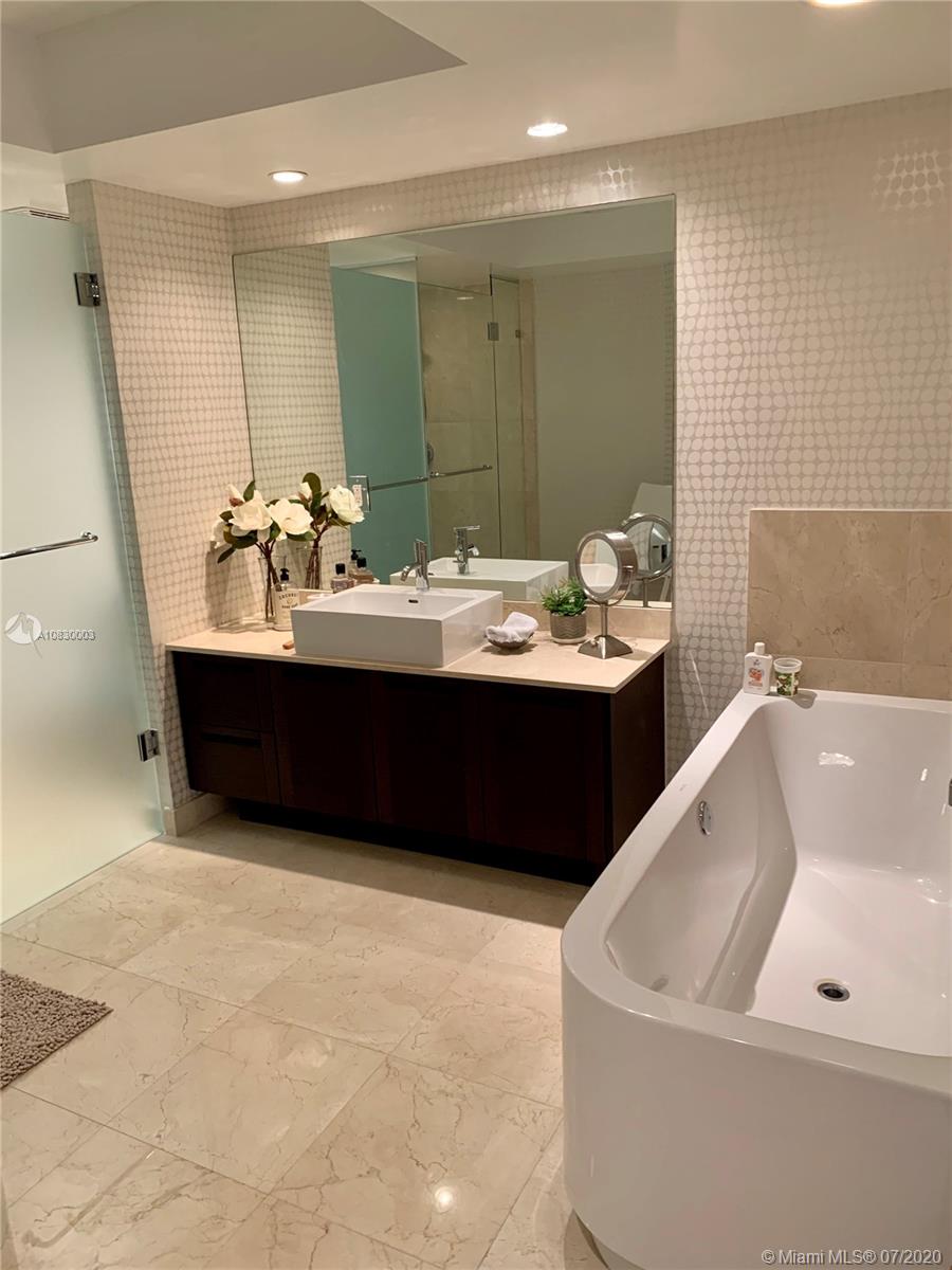 Enjoy beautiful water views from this large 3 bdr/2 bth (1458sf) unit, in Sunny Isles Beach. Open floor concept with marble floor in living room and carpet in bedrooms. Large terraces. Two parking spaces, 1 assigned and 1 valet. Washer and dryer inside. Excellent amenities, heated pool, gym, steam room. Beach Club at Sole. Minutes to the beach and Aventura Mall