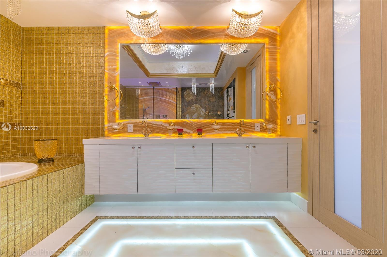 Unlike any other unit! Professionally decorated and fully furnished with beautiful Ocean views and huge patio that leads to a private pool deck! Entry through a private foyer: Marble & Onyx floors, Custom designed kitchen, 24karat gold-plated accent wall, Ultra modern luxurious bathrooms, Master bedroom with Venetian Plaster and Swarovski crystal ceiling, Security cameras throughout the unit, built-in entertainment center, Grand chandeliers, built-in bar. Enjoy all the Trump Amenities! Two heated lap swimming pools, walk-in jacuzzi, state of the art fitness center, restaurant, valet parking, security 24/7. Must see to appreciate!