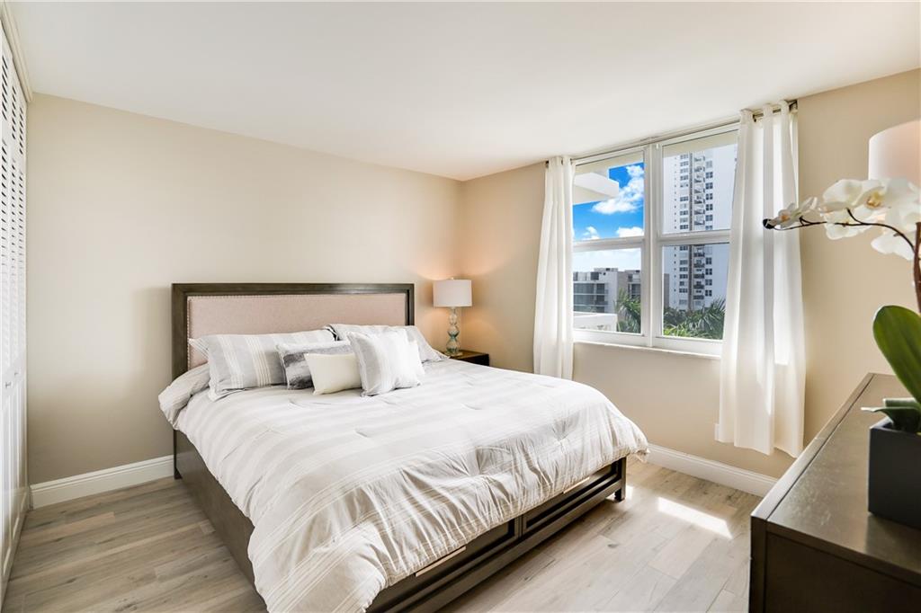 Live at the beach in this PH designer completely remodeled furnished corner 2/2 condo with ocean and intracoastal views. IMPACT WINDOWS -IMPACT SLIDING DOOR TO LARGE BALCONY. AMAZING VIEWS. Wood floors throughout unit, granite counters with tiled back-splash all high hat lighting, self closing white cabinets and newer LG fingerprint resistant stainless, stainless faucet with trough style sink. Master bedroom has California closets with built ins and double hanging. Master bath all tiled with step in shower. Newer Trane a/c and Rheem hot water heater. Building has done 40 year inspection, newer roof and all concrete redone and painted. All ages. Low maintenance 1550.00 quarterly with reserves. Newer heated pool, barbecue and garden areas & EXTRA storage. NO LEASING. Small pet ok.