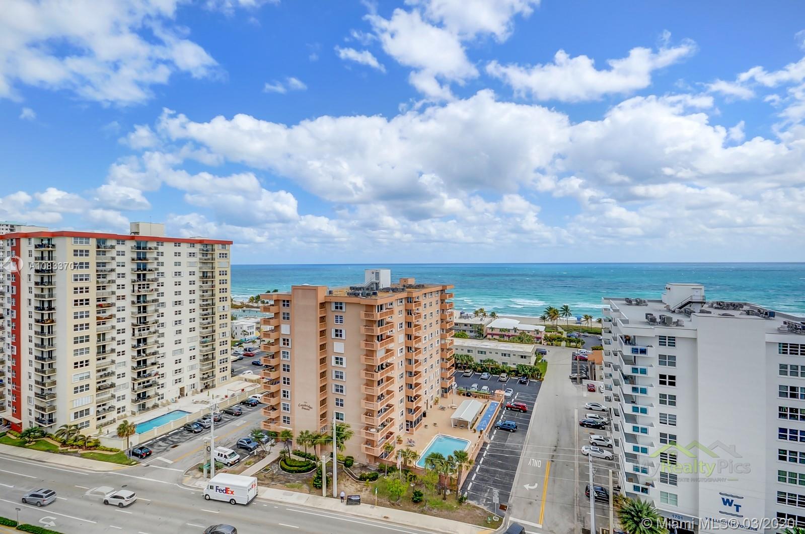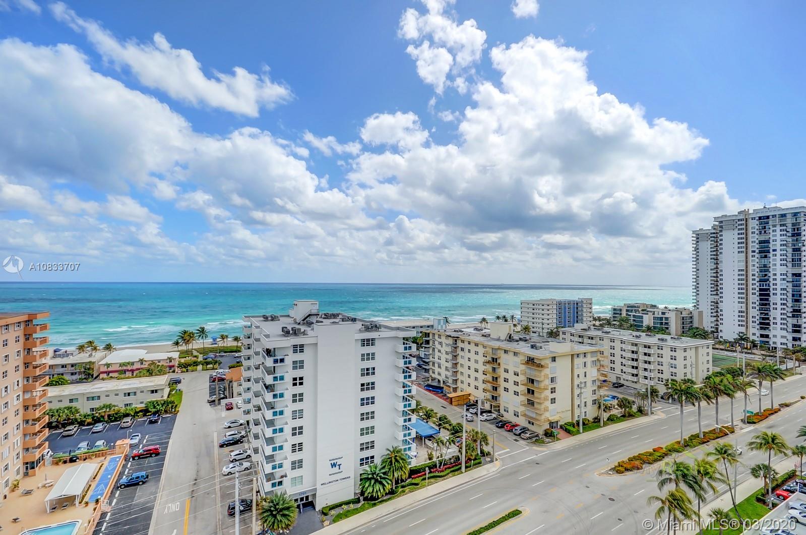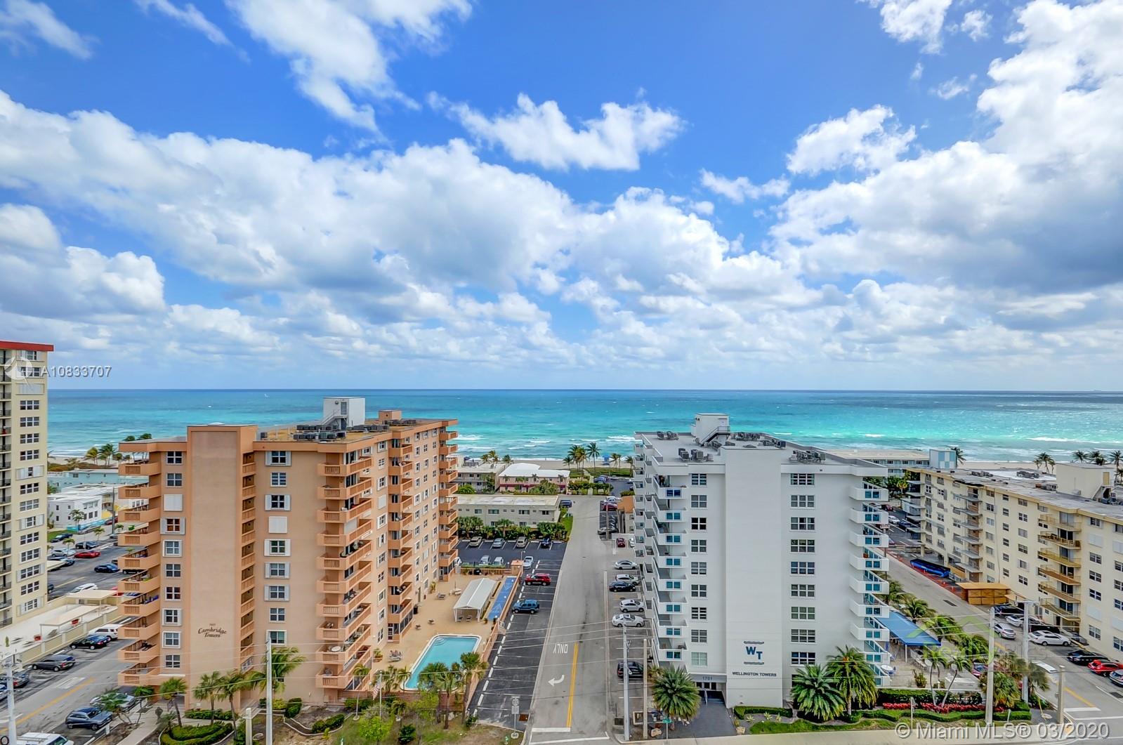 Lovely Corner unit with direct ocean and canal view from living room and two bedrooms. Excellent location across the street from the famous Hollywood Beach. Large open kitchen, bright living room spacious bedrooms, pool, gym and Lobby.
