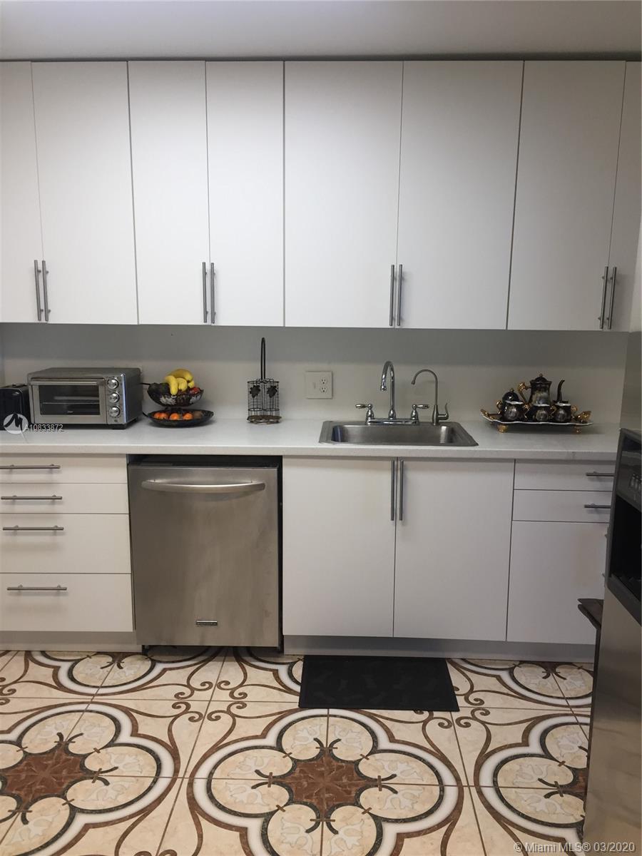 Beautiful, large corner2/2 over 1500 Sq.Ft. with wood and tile floors, new kitchen, jacuzzi tub, tiled master bath. Stretch ceiling in 2nd Bd. Nice garden view from living room with palm trees and lighting and unobstructed view from bedrooms. Large balcony, facing NE and overlooking beautiful street. You can increase ceiling height by more then 3 feet and turn it into a loft unit. This 2nd floor unit has 2nd lobby with separate private garage entrance where you don't have to use the elevator. Two swimming pools, 2 modern gym, sauna, restaurant. Lounges with umbrellas on the beach included. Furniture optional. Shutters. Sold as is. Owner relocating. Excellent price for fast sale.