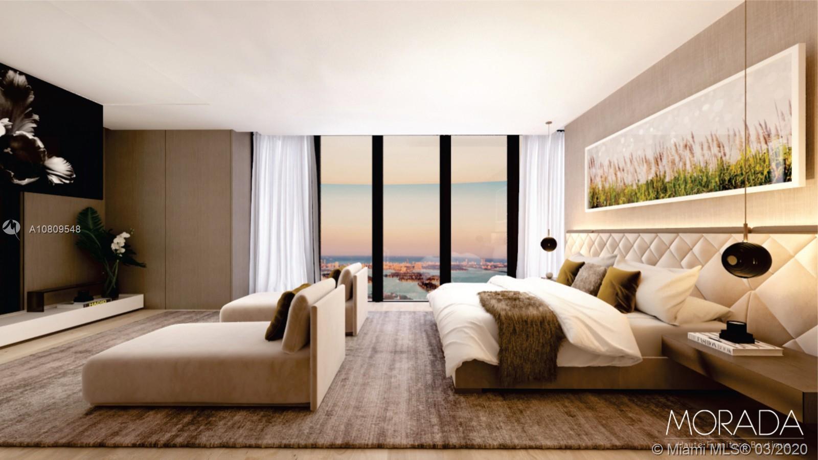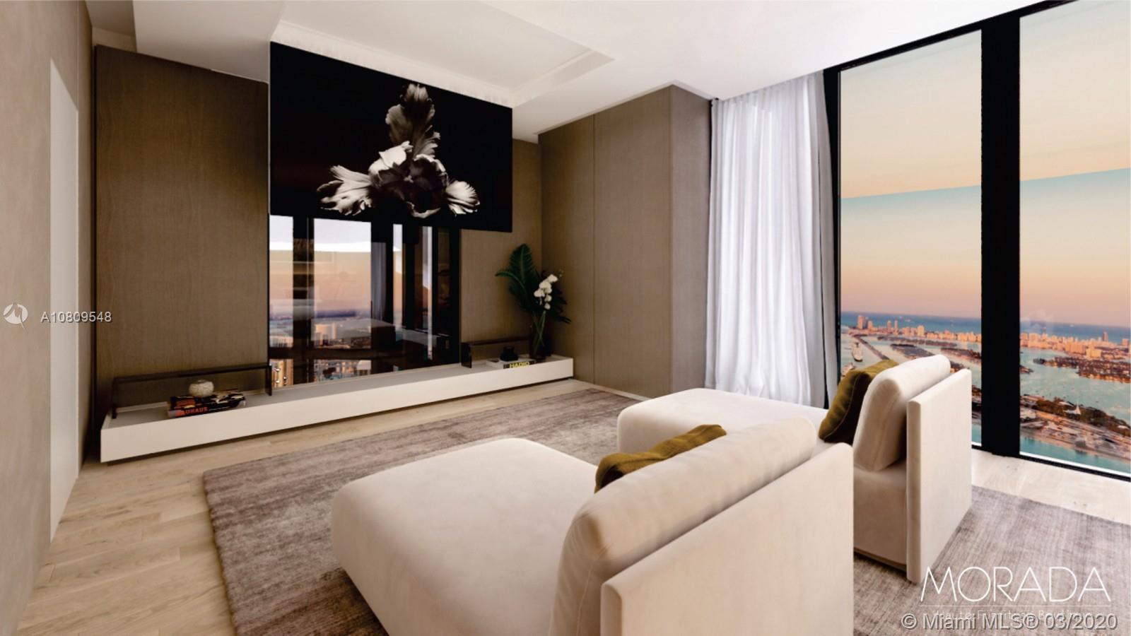One Thousand Museum by Zaha Hadid, Miami most prestigious new residential tower pushes the limits of innovations and blurs the lines between art and architecture. The limited collection of museum quality home offers an unprecedented level of service and amenities. This 8,344 sq. ft. duplex townhouse features a flow through floor plan with unobstructed Biscayne Bay views, a floating staircase designed by Hadid, 20 Ft. ceiling, library , loft, 5 bedrooms, smart home technology and custom closets. The photographs are renderings.