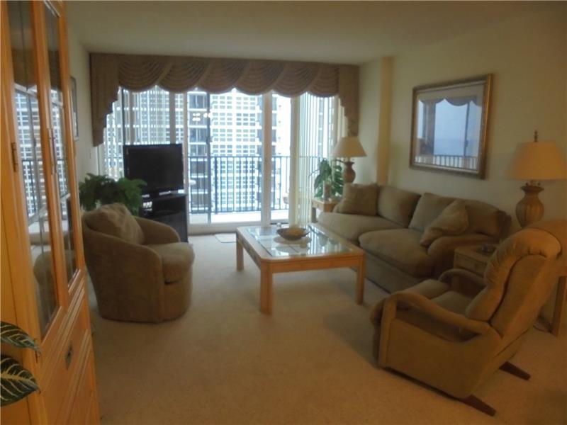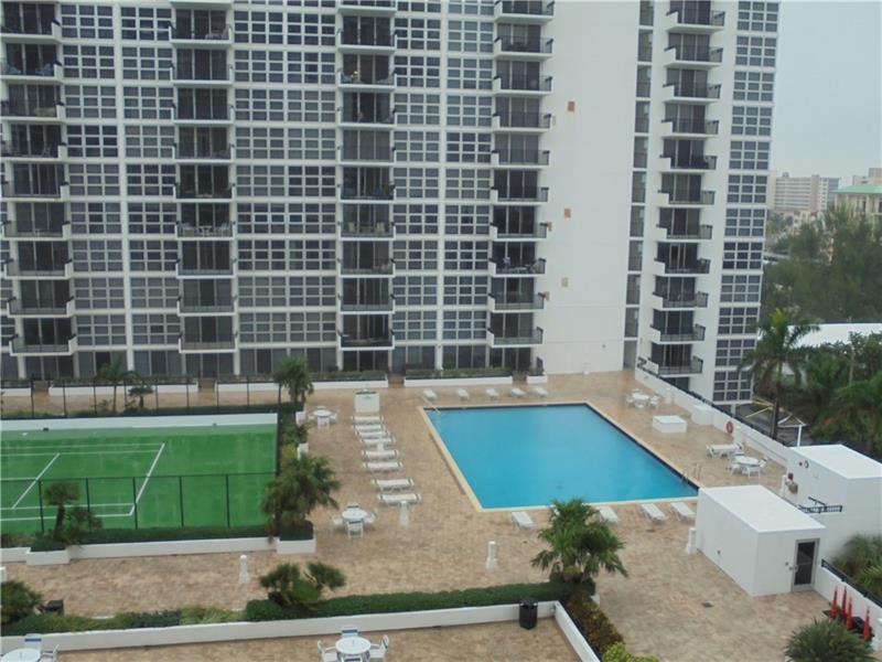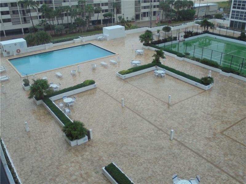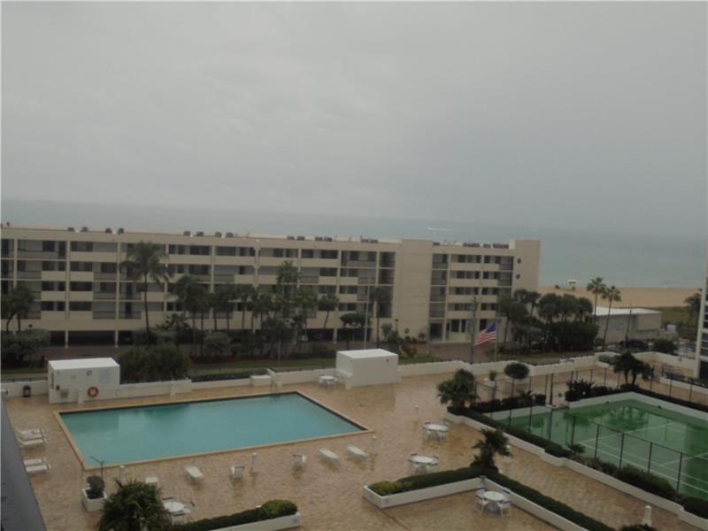 2 GARAGE PARKING SPACES !!!!!!! Lovely 2 bedroom unit with nice view of ocean, beautiful pool deck, 2 pools and tennis. Good condition, nice kitchen cabinets and tile floor which is not original. Split bedrooms, Floor to ceiling impact windows and doors. New Hot water heater, comfortably furnished and close to laundry room. Many amenities including exercise rooms, library, game room, party room and 24 hr. concierge. Close to shops, Pompano Beach Pier, New Beach house restaurant and more. No age restriction, No lease 1st year of ownership.