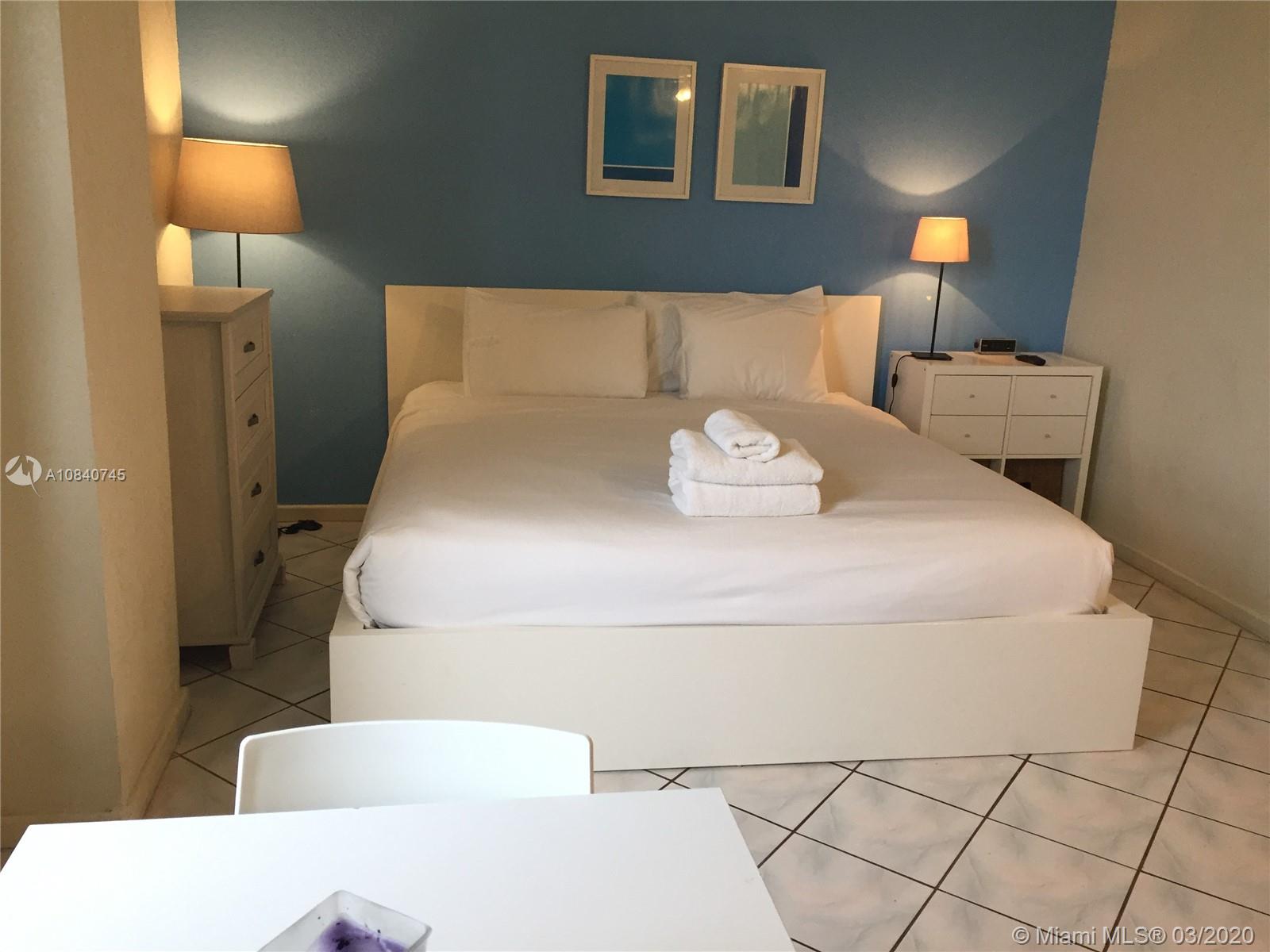 Amazing rare inside (almost) corner with Intracoastal/Marina/Hardrock Guitar Hotel and more views! Look at pictures, unit has alcove used as bedroom so you have the closest thing to a 1 bedroom with the condo fees of an efficiency! Modern kitchen and new bath fitters bathroom! Large closet storage, plenty room used as living room, fully furnished & ready for you or to rent on a daily, weekly or monthly basis. Priced less than the smallest unit and the size of the larger units. Walk out to the pool and to the Broadwalk and steps to the best restaurant. $1 trolley to downtown and all around Hollywood, Arts Park, Downtown dining & much more. See remarks below re unit square footage explained. Condo Fees incl just about everything except Property Taxes