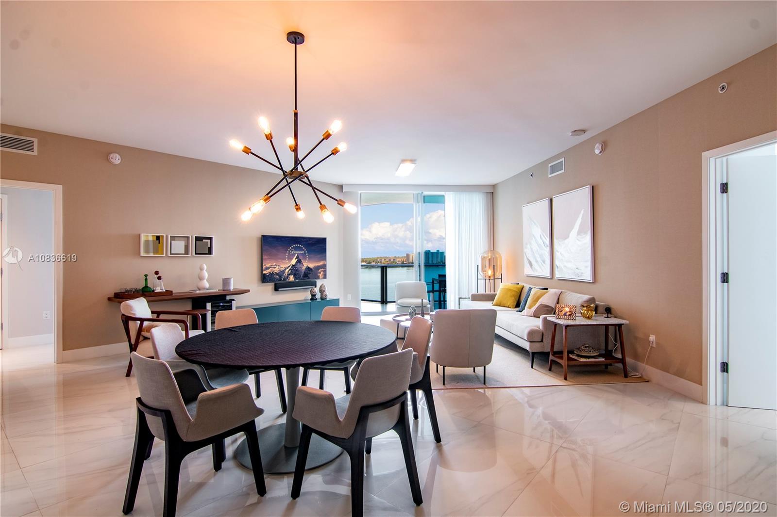 Stunning turn key apartment with incredibly peaceful view. Spacious fully finished and furnished two bedrooms plus a large den and three full bathrooms, with an open floorplan ideal for entertaining. No expense spread in this tastefully designed unit at the elegant Reserve at Marina Palms. The Reserve at Marina Palms offers an unparalleled waterfront lifestyle, with five star amenities such as, infinity pool overlooking the bay, fully equipped GYM, concierge, Marina Facilities and much more. Easy to Show and Priced to Sell!