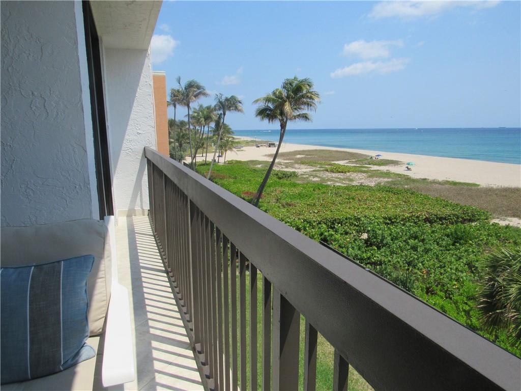 Wow! Now available: a two bedroom direct oceanfront, boutique building with just 48 units. Spectacular 180 degree unobstructed view of the ocean, the beach and the dunes from Pompano pier to Hillsboro lighthouse. Upgraded with neutral decor, porcelean floors, decorator paint, crown molding. Remodeled kitchen has granite, stainless steel appliances, white cabinets and washer/dryer. Both bedrooms will accommodate king beds, Master bath has roman tub. New impact front door, impact glass on ocean side and accordian shutters on front windows. This is the ultimate in oceanfront living with garage parking, gym, heated pool and clubroom. In perfect condition and in a quiet, clean building that's walking distance to pier and restaurants. Don't miss this beauty.