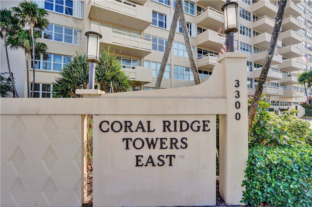 Complete Renovation, Modern Design Corner unit with Ocean view... Coral Ridge Towers Premier East Building. Private clubhouse on the Intracoastal, Olympic size heated Pool on Amazing landscaped grounds... Only steps to the Beach, Banking, Shops and Fine Dinning at Fort Lauderdale's North Beach and Galt Ocean Mile.....