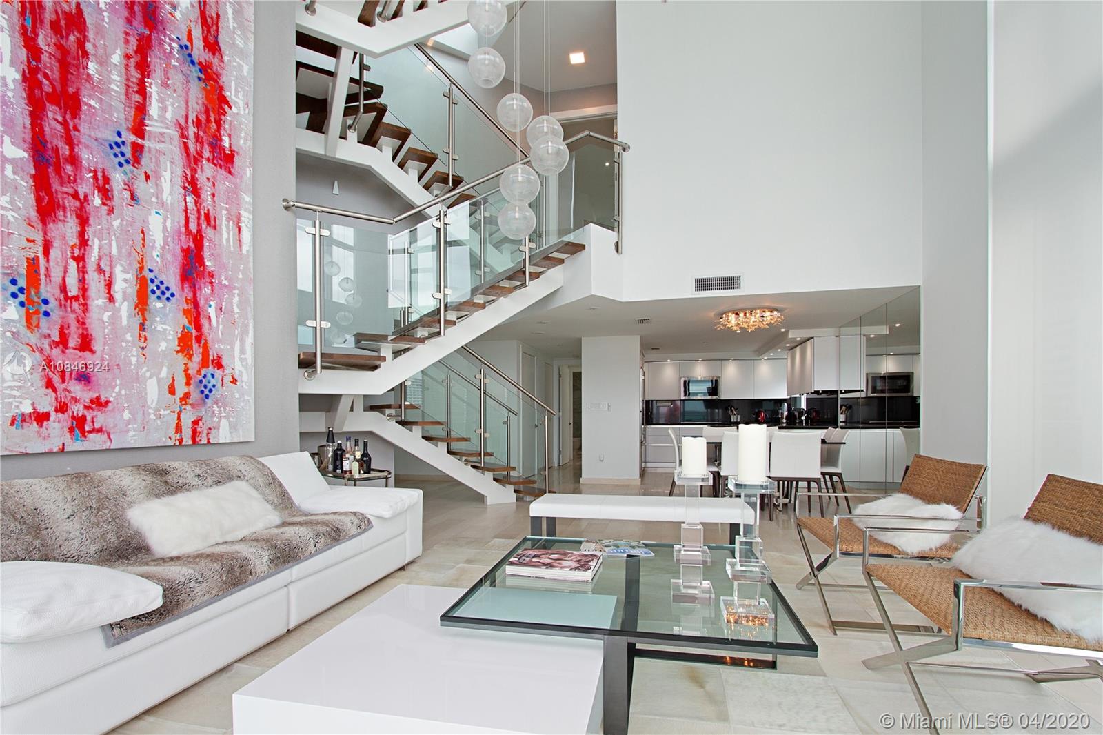 REDUCED! One of a kind tri-level unit with unobstructed Biscayne bay views completely remodeled. Unit consists of 3 bedrooms, one per story, with their own bathroom and balcony, plus an oversized terrace overlooking Biscayne Bay. Enjoy this masterpiece recently updated with custom-made stairs, walk-in closets, new travertine flooring, replaced appliances and 2 updated A/C units, new lighting and sonos sound system, to name a few of the $400K+ upgrades done in this unit. Unit comes with 1 assigned parking on same floor as unit and an 1 additional parking on valet. Complimentary valet for guest at no cost. Storage unit included. Furniture by ARTEFACTO negotiable in sale. Jade Brickell Condominium offers state of the art amenities, cable and internet included