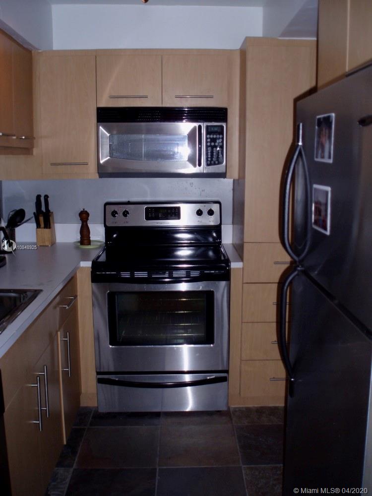 Tastefully designed 1 bedroom unit at Mirador North. City and partial bay views. Upgraded kitchen with Stainless Steel appliances and newer cabinets. Laminate wood floors throughout. Lots of closet space, walk in closet in the bedroom. Modern bath with subway tiles, new vanity and new flooring. New impact windows. Valet parking available for $50/month for the first car. Building is located on quiet, residential bay side of South Beach. Valet parking, pool, BBQ area, state of the art fitness center and on site market, security and concierge on property. Bike racks available. Furnishings in photos available for purchase. Pet friendly! Great location with Whole Foods, restaurants, cafes and Flamingo Park. The least expensive 1 bedroom unit in the building! Don't miss this one!