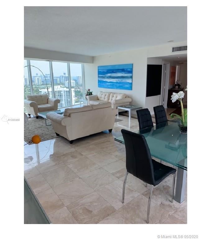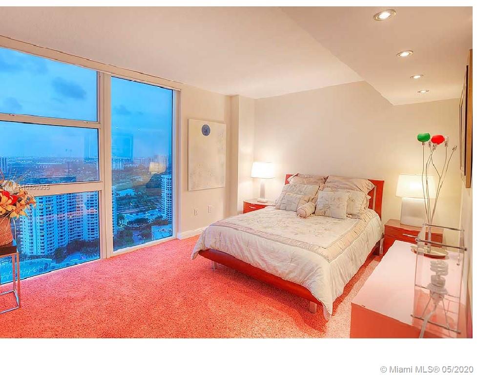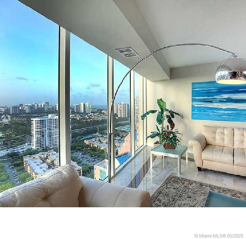 HIGH-END SPACIOUS CONDO WITH AMAZING BAY AND CITY VIEWS! Turnkey furnished three bedroom, three bathroom condominium with two balconies and floor-to-ceiling windows on the 32nd floor. The semi-private elevator is within a few steps from the units entrance. Marble floor in the living & dining area and the kitchen. Capacious master bedroom, master bathroom with jacuzzi tub, walk-in shower, double vanities and bidet, large walk-in closet. Huge kitchen with bar stools and the breakfast table & office space. Pools with water views, spa, gym, courts, library, game room etc. Two parking spaces int the garage under the building. HOA included basic cable, internet and water. Reception area with valet parking. Close proximity to Aventura mall.
