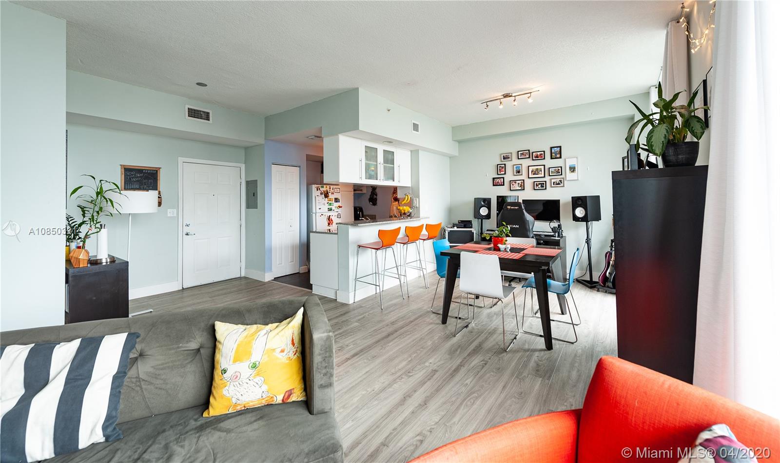 Incredible 1BD/1BA in central Edgewater location. Largest 1BD available. Sleek, modern look w/ floor-to-ceiling impact windows, abundant natural light + balcony w/ gorgeous sunrise bay to sunset city views. Brand new modern laminate floors throughout, updated kitchen w/ black tile + washer/dryer in unit. Spacious open-concept w/ separate dining & living areas, open kitchen bar/counter & master bedroom w/ large walk-in California closet. Ideal for the buyer looking to live in the heart of Miami, along booming Biscayne Blvd corridor w/ restaurants & businesses, close to the bay, Downtown Miami & Wynwood Arts District + plus Publix just 1 block over. Amenities include large gym, pool, spa, clubroom. 1 parking included in covered garage (on same floor as unit) + add. spots can be rented.