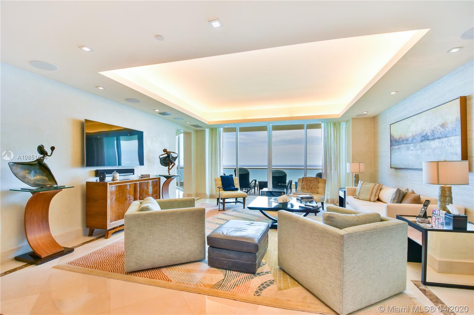 Live in the most amazing residential on the beach Turnberry Ocean Colony. Spectacular 4 bedroom 4.5 bathroom plus stuff room residence. This magnificent unit has been professionally designed and decorated with the finest furnishings, featuring 10' ceilings, marble floors throughout with unobstructed Ocean and Intracoastal views. Luxury resort style amenities, private spa, privet beach, 2 pools , fitness center, club for kids, hair salon, 2 restaurants and more.