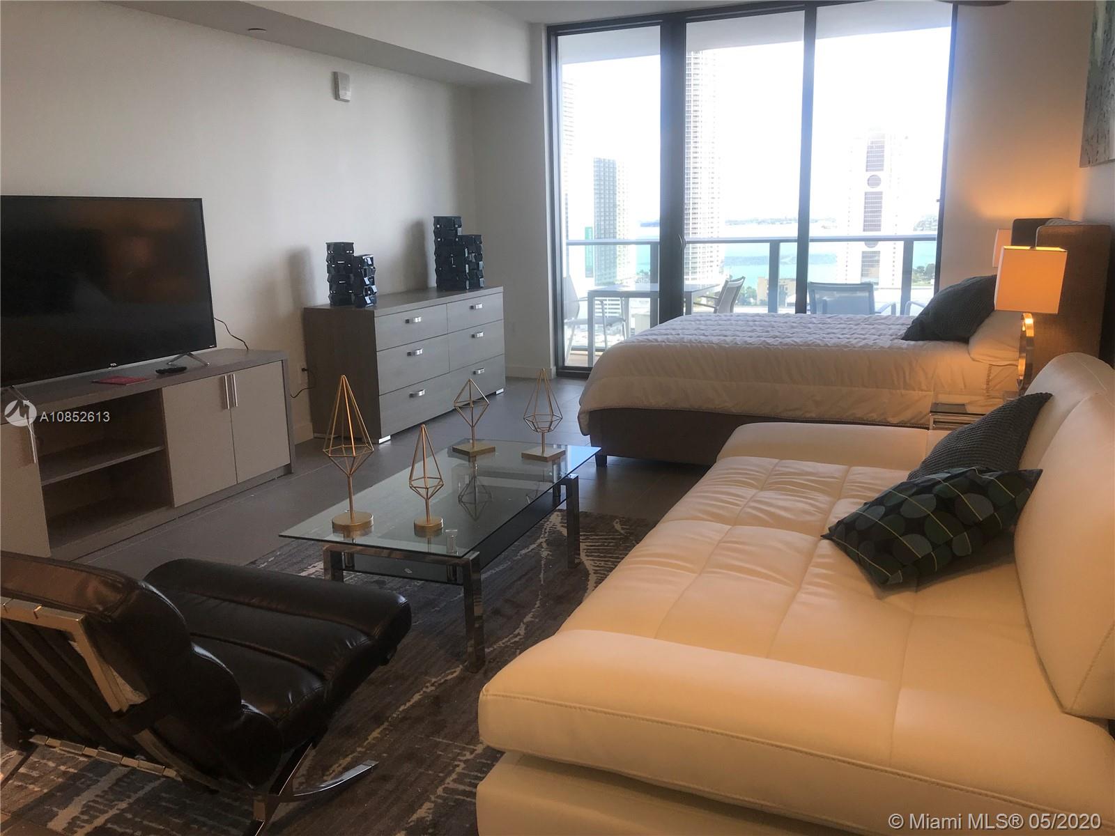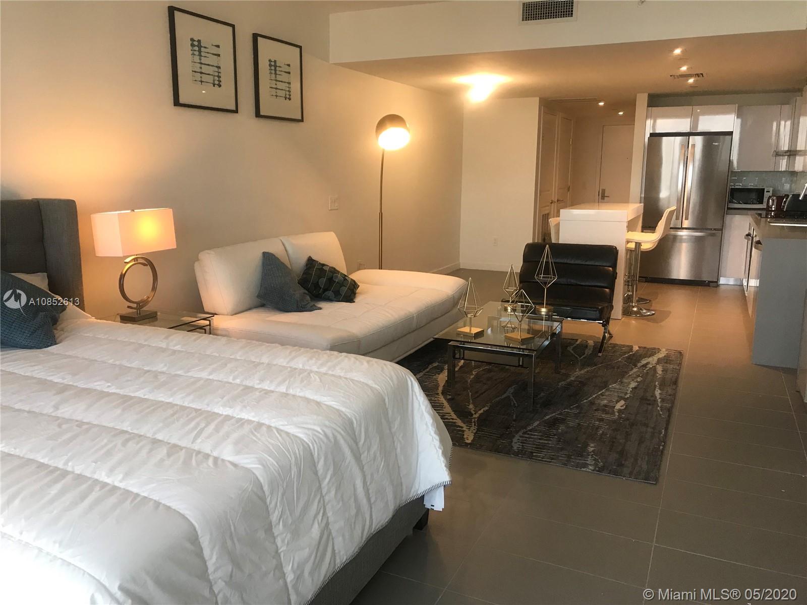 Enjoy the stunning views of the bay and the downtown skyline from this new studio. This furnished unit offers an open floor plan, stainless steel appliances, window treatment, floor to ceiling windows, porcelain floors, bright white combined kitchen cabinets of European design and quartz countertop. The building has 3 swimming pools, sauna, jacuzzi, state-of-the-art gym, yoga and meditation room, racket, barbecue area, massage rooms, movie screening room, modern games room and outdoor lounge. Live close to everything, one block from Free Metro, Arsht Center, museums, minutes from downtown, MIA Airport, Brickell, Wyndwood and Miami Beach. Pets welcome! 620 SQFT