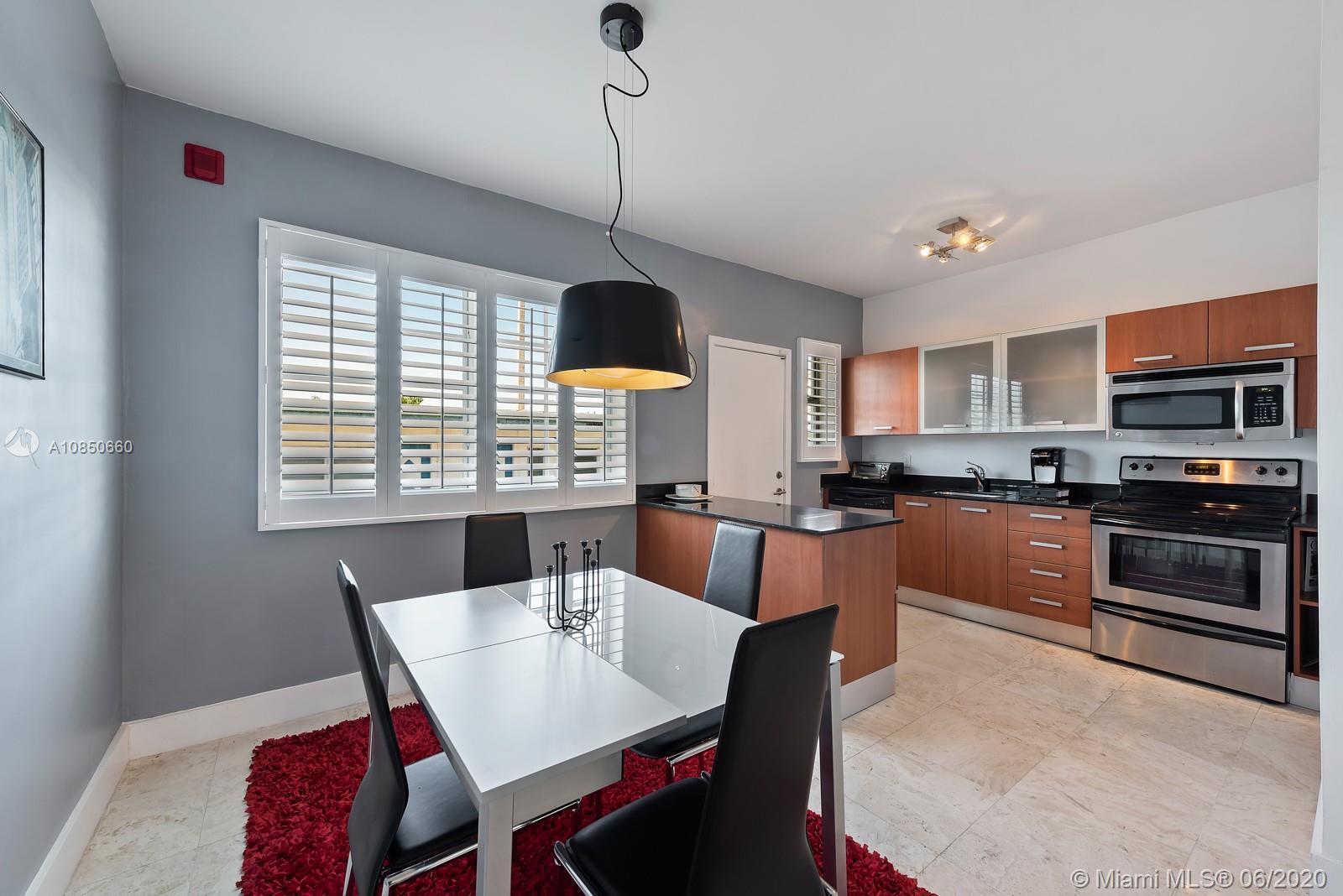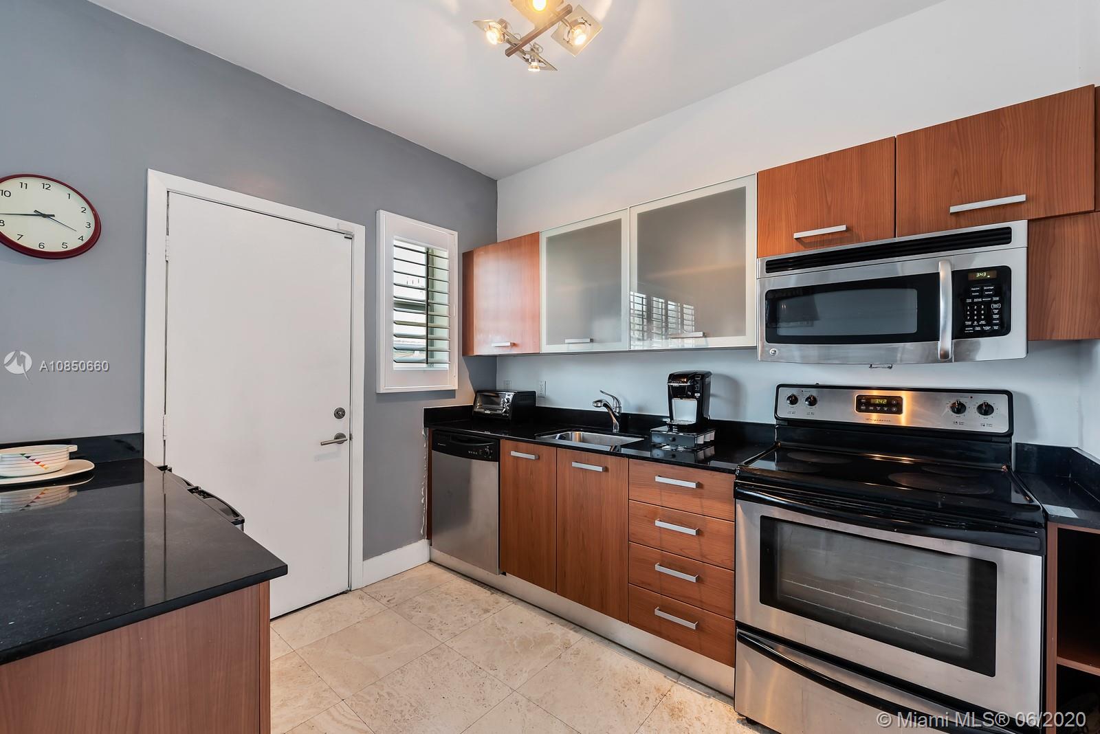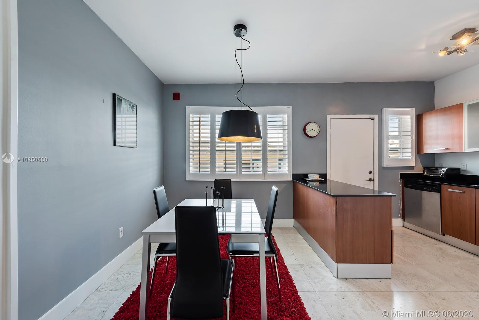 Mid Century Modern 1 bedroom Pied-a-terre in the heart of South Beach completely updated with travertine marble throughout, open kitchen with stainless steel appliances and granite counters. Modern bathroom with mosaic tiles, stacked washer & dryer, lovely wood plantation shutters and frosted glass doors complete the package. Quiet residence walking distance to Lincoln Road shops, Flamingo Park and Whole Foods. Perfect pet-friendly investment rental as it allows six month terms. https://youtu.be/S3_zatuW9zo