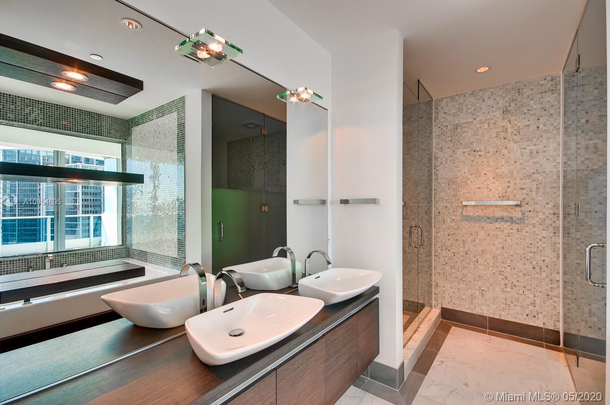 EXTRAORDINARY 3/3.5 BATH 2,502 SF PENTHOUSE, WITH 10' CEILINGS AND OVER-SIZED 597SF TERRACE. UNOBSTRUCTED BAY AND CITY VIEWS DAY AND NIGHT WILL ENLIGHTEN YOUR SENSES. THIS CORNER UNIT W FLOOR-TO-CEILING WINDOWS GIVES YOU BREATHTAKING 280 DEGREES VIEWS OF MIAMI BEACH, BRICKELL, KEY BISCAYNE, SOUTH & DOWNTOWN MIAMI. WHITE GLASS TILES GIVES YOU THE PEACE AND TRANQUILITY YOU DESIRE, UNIT FEATURES OVERSIZE MASTER BEDROOM W CUSTOMIZED HIS AND HERS CLOSETS, ELECTRICAL WINDOW TREATMENTS, RECESSED LIGHTING, UPGRADED APPLIANCES. LUXURY HOTEL AMENITIES SUCH AS 5 STARS SPA AND GYM, IN ROOM SERVICE, 2 WORLD CLASS RESTAURANTS AND PIANO-BAR. 2 PARKING SPACES + VALET. ONE OF A KIND!!DO NOT MISS THIS INCREDIBLE OPPORTUNITY!! WALKING DISTANCE TO BRICKELL CITY CENTRE & BRICKELL.