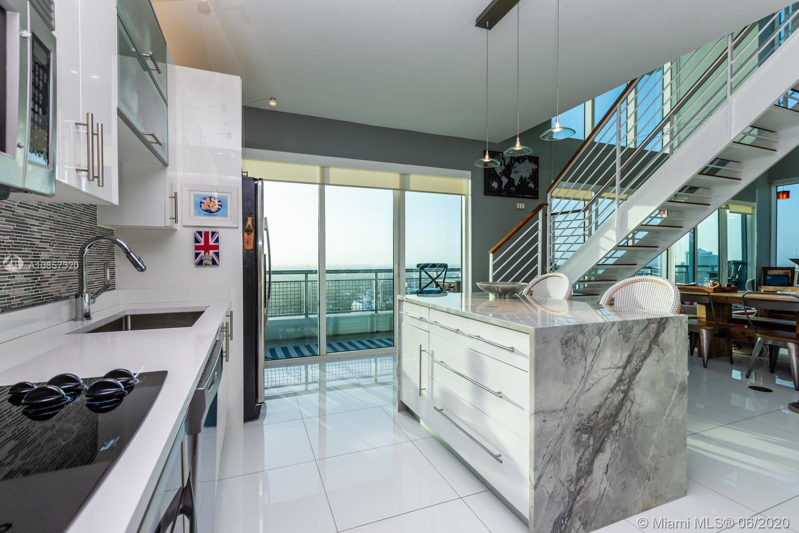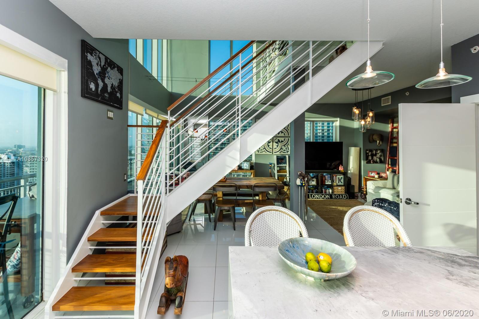 Welcome to Infinity Brickell #2821 the absolute best combination of Modern & Rustic touches for a loft in all of Brickell. Features include: 24x24 white glass Porcelain tile throughout, upgraded Quartz Counter tops & kitchen island, fully upgraded walnut stairs & railings, rustic paneled living room wall, newly installed rustic barn door replacing the washer/dryer door, elegantly upgraded master bathroom & half bath, newly installed AC unit, custom master bedroom closet & guest bedroom closets and more. Take advantage of the sweeping wrap around terrace with floor to ceiling windows throughout allowing for the most fantastic sunset, skyline & panoramic views in all of Miami. If you are looking for a completely upgraded and stylish loft in Brickell don’t miss this amazing opportunity.