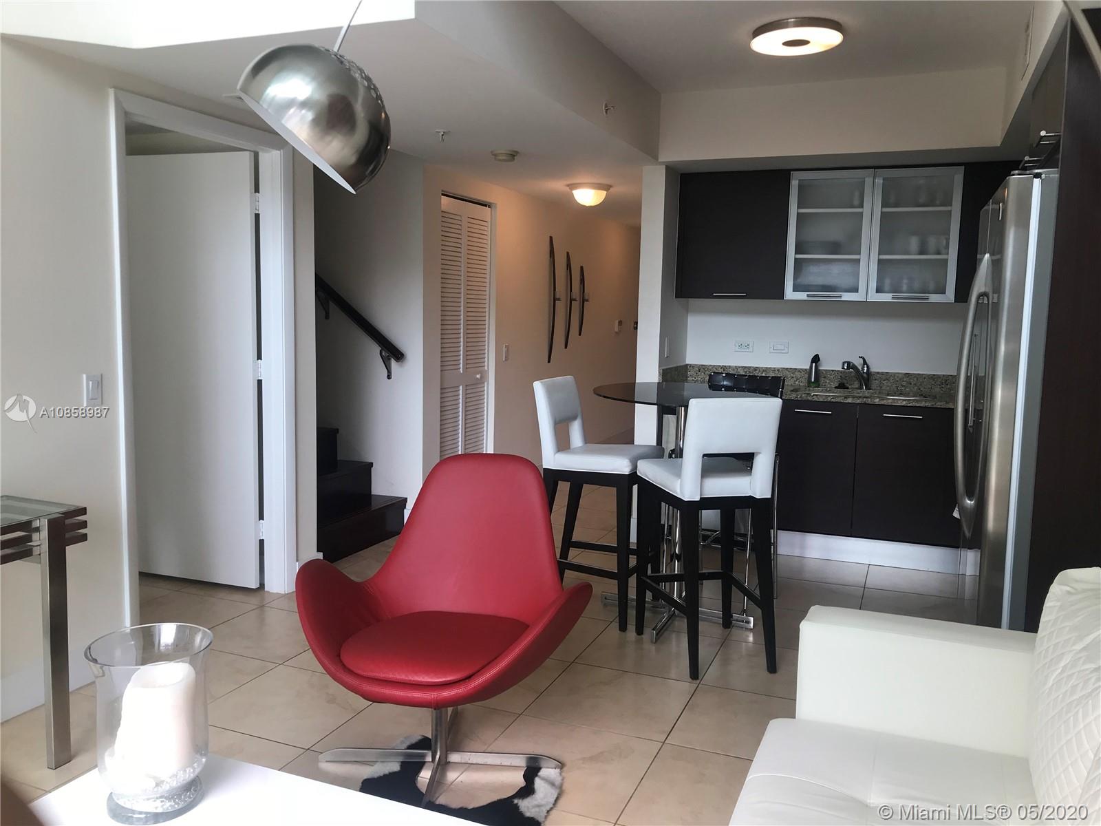 Beautiful loft 2 level condo featuring 2 bed 2 bath and a Den, tile floors all throughout, walking closet, european style kitchen with granite countertops and stainless steel appliances. Large balcony with amazing views. 2 parking spaces. Great full service building with plenty of amenities. Excellent location in Brickell on Miami River, next door to the metro mover, walking distance to downtown and 1 block from Brickell Citicentre. Must see!!!