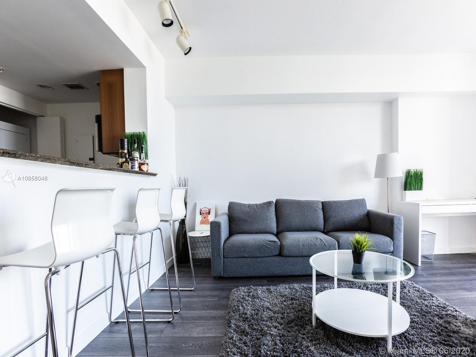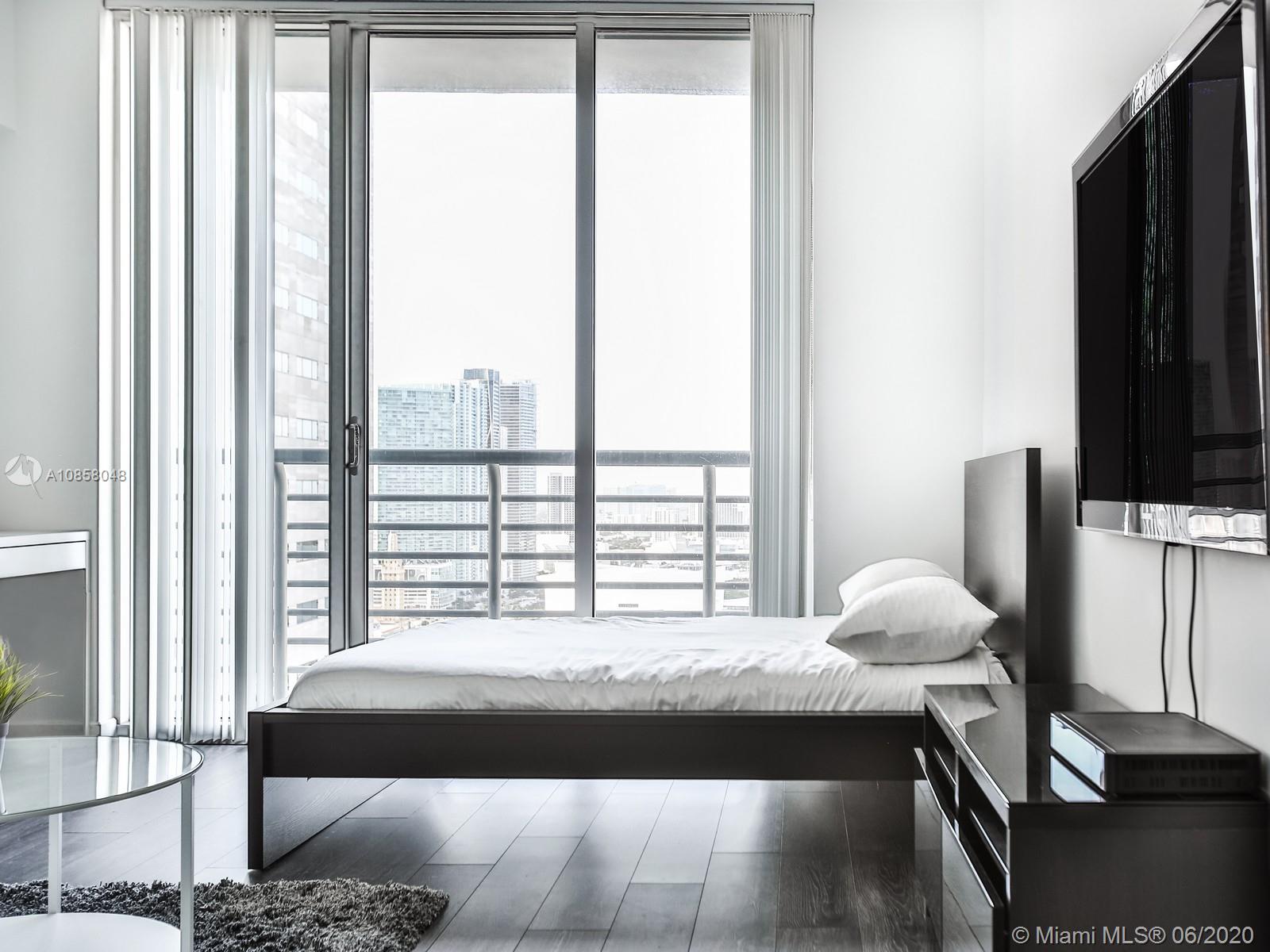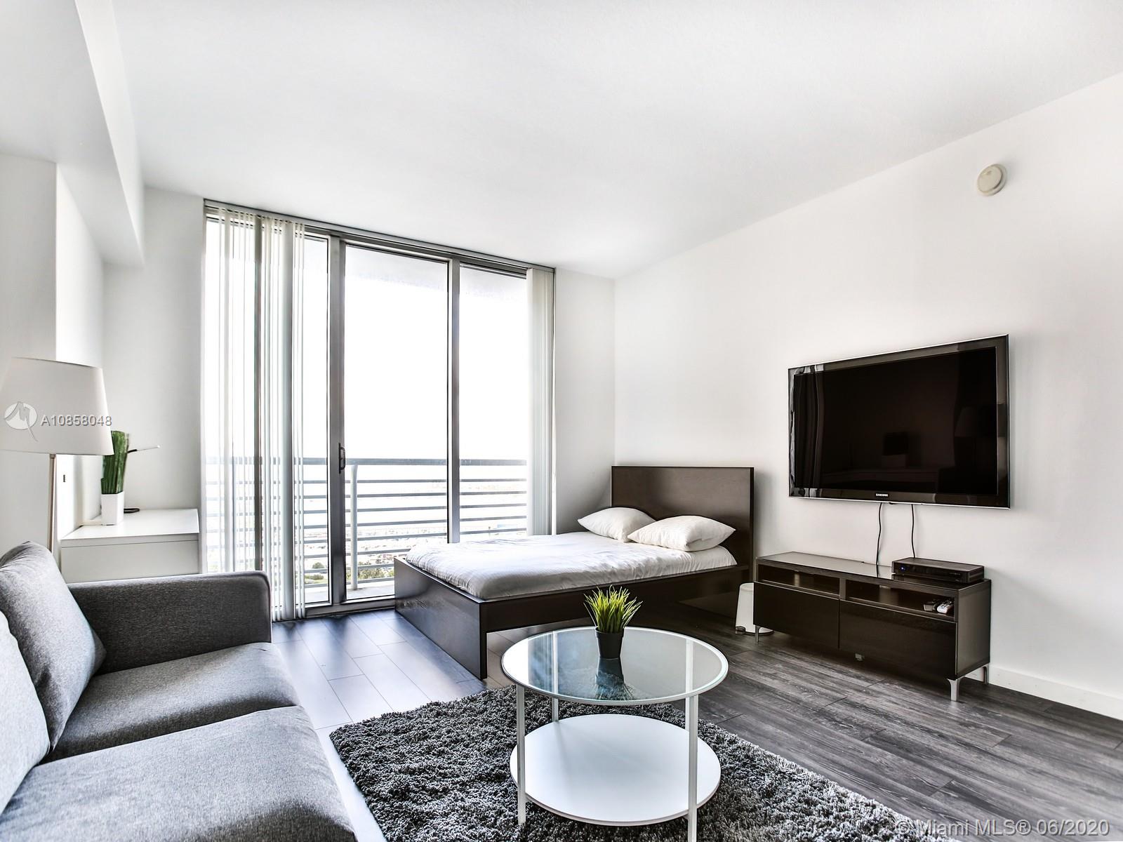 Beautifully furnished Studio with amazing views. On the 37th floor, you will enjoy amazing unobstructed views of Biscayne Bay and Downtown Miami including American Airlines Arena, Bayside Mall and Bayfront Park. Fully furnished with modern styling and upgraded floors make this unit the perfect home. The kitchen has all stainless steel appliances with counter-top and bar stools for entertaining guests to a nice meal. Unit includes both cable and internet which are already connected for your convenience. Great location just steps away from Whole Foods. The unit comes with 1 parking spot. The building has a number of great amenities such as gym, pool deck with lap and resort-style pools, hot tub, business center, club room, 24-hour security, 24-hour concierge, 24-hour valet parking.
