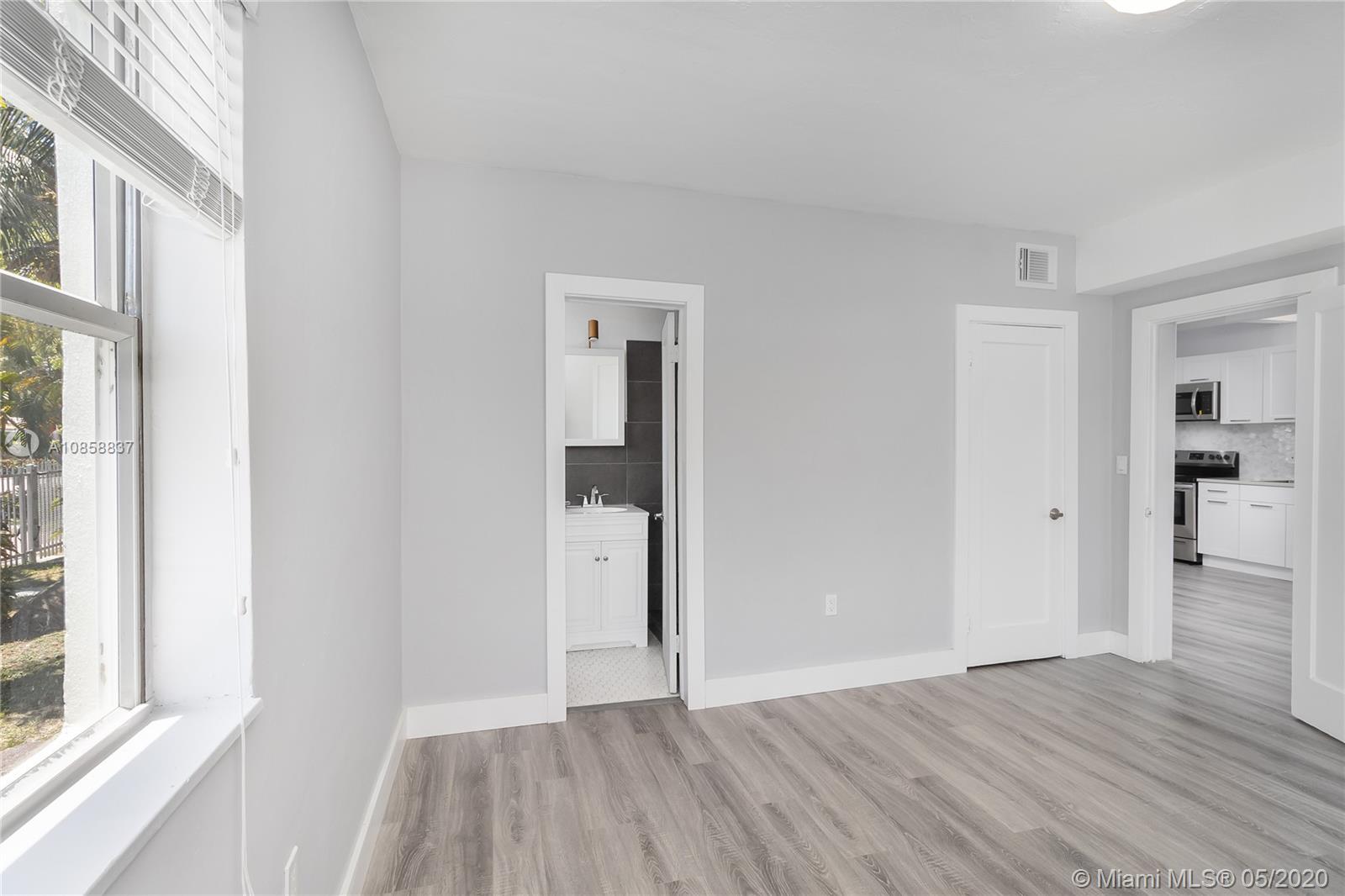EVERYTHING IS NEW! 2-bed/2-bath PLUS DEN WHICH CAN BE USED AS 3rd BEDROOM, NURSERY or OFFICE-HAS INDEPENDENT ENTRANCE, CLOSET and WINDOW). This is the best deal on Miami Beach today! A total renovation with full/approved permits. Corner-first floor unit. Very large open floor plan with high ceilings. Split bedrooms. Each with their own full bathroom and walk-in closet (#1: bathtub/shower combo. #2: Stand-up shower). All new paint, plumbing, electrical, flooring, lighting, cabinetry, Silestone countertops & stainless steel appliances. Custom 2" wide wood blinds. Building's are located on the water with swimming pool and BBQ areas. Walking distance to the beach, Normandy Square Fountain, shops, grocery and new restaurants. Newer central a/c. Be part of the new "North Beach's expansion. NICE!