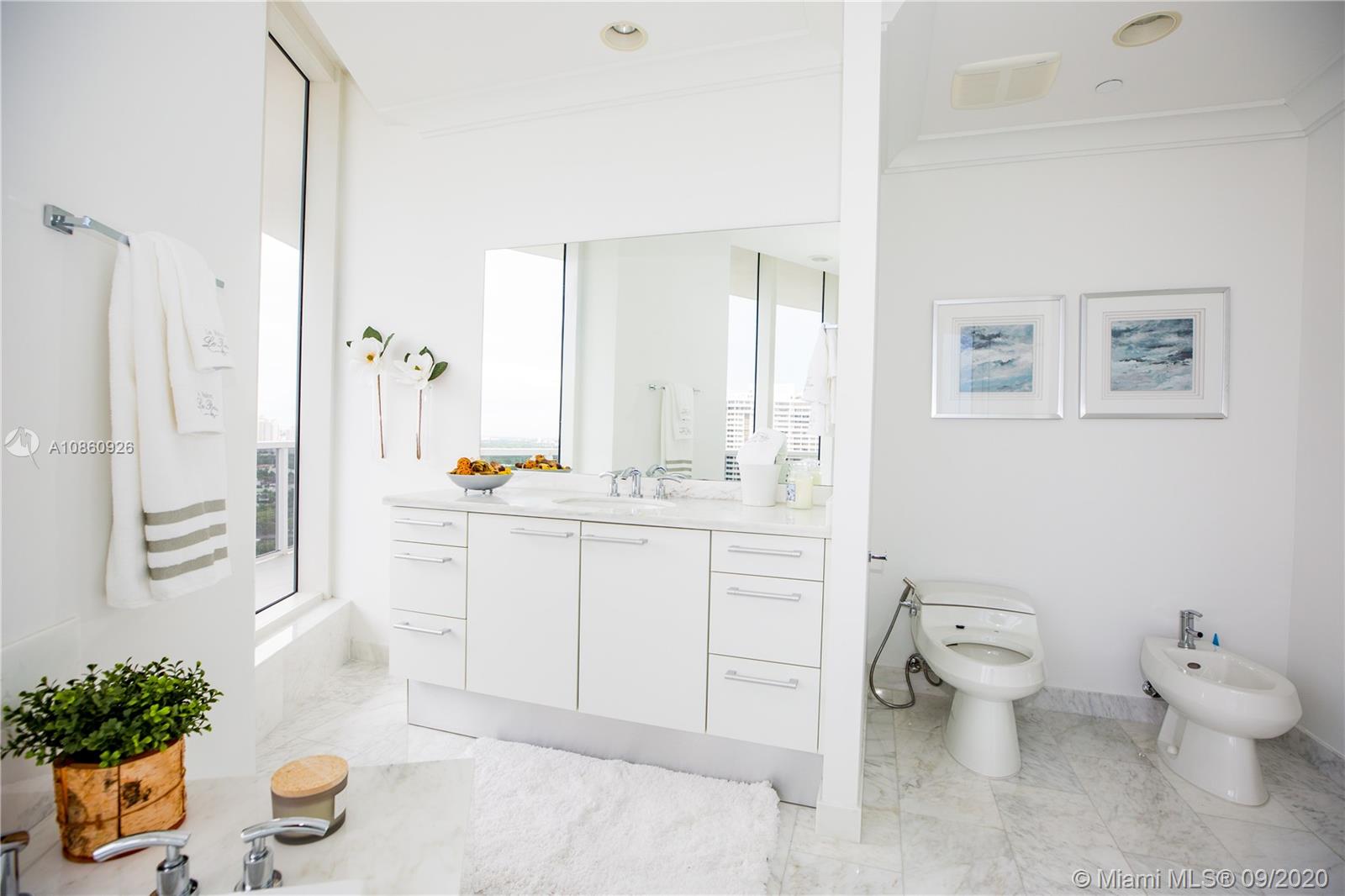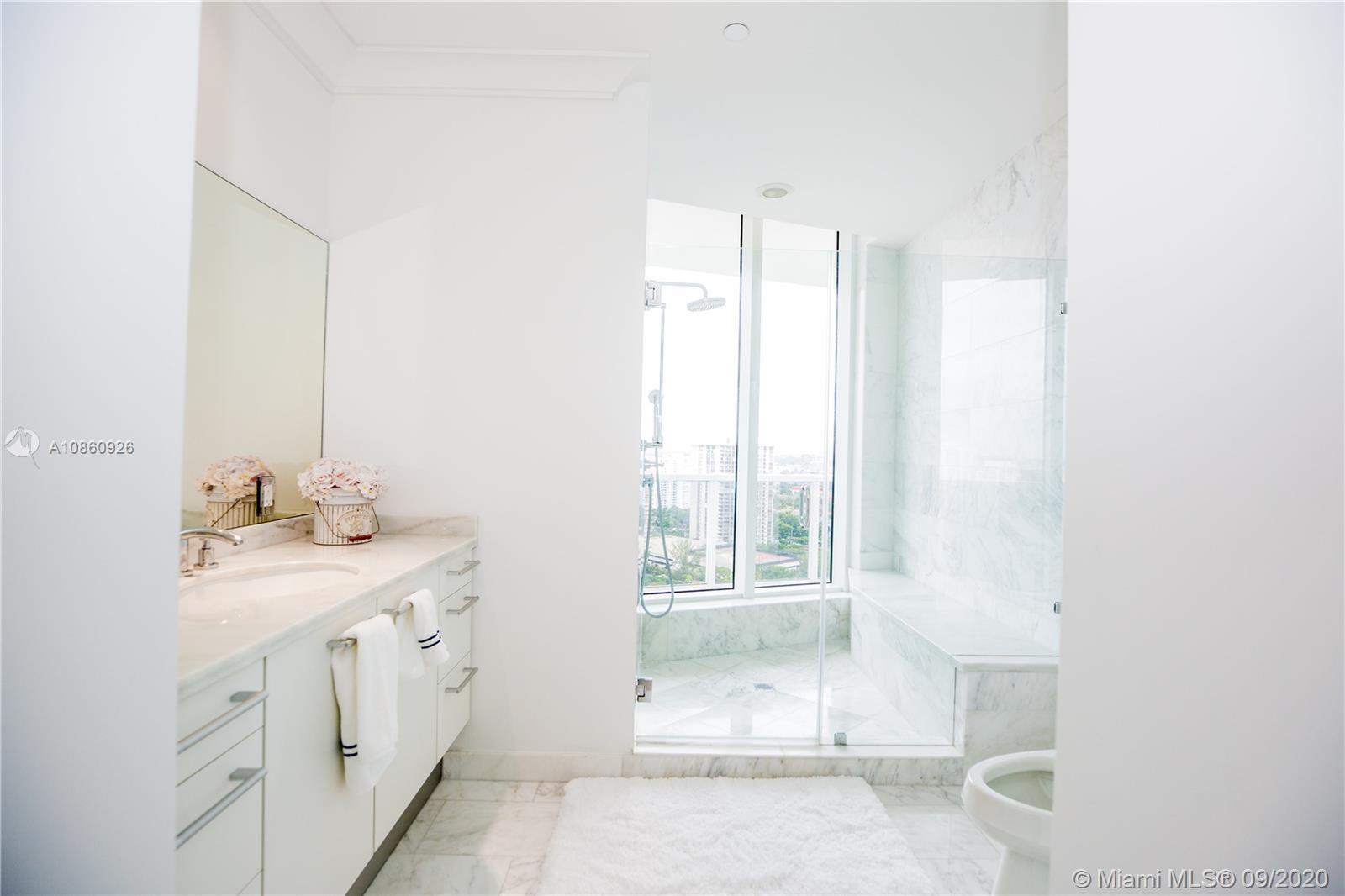Incredible Opportunity to Own a Double Unit in Bellini at Williams Island! Stunning Views of Bay & Ocean. Super Spacious Floor Plan w/ 10' Ceilings. Floor to Ceiling Glass Windows all through out Home as well as White Marble Floors, Electric Window Shades, His & Hers Baths & Closets! Unit is Offered Fully Furnished! Live In a Penthouse w/o Paying a Penthouse Price! TENANT OCCUPIED, 24-48 HR NOTICE REQUIRED