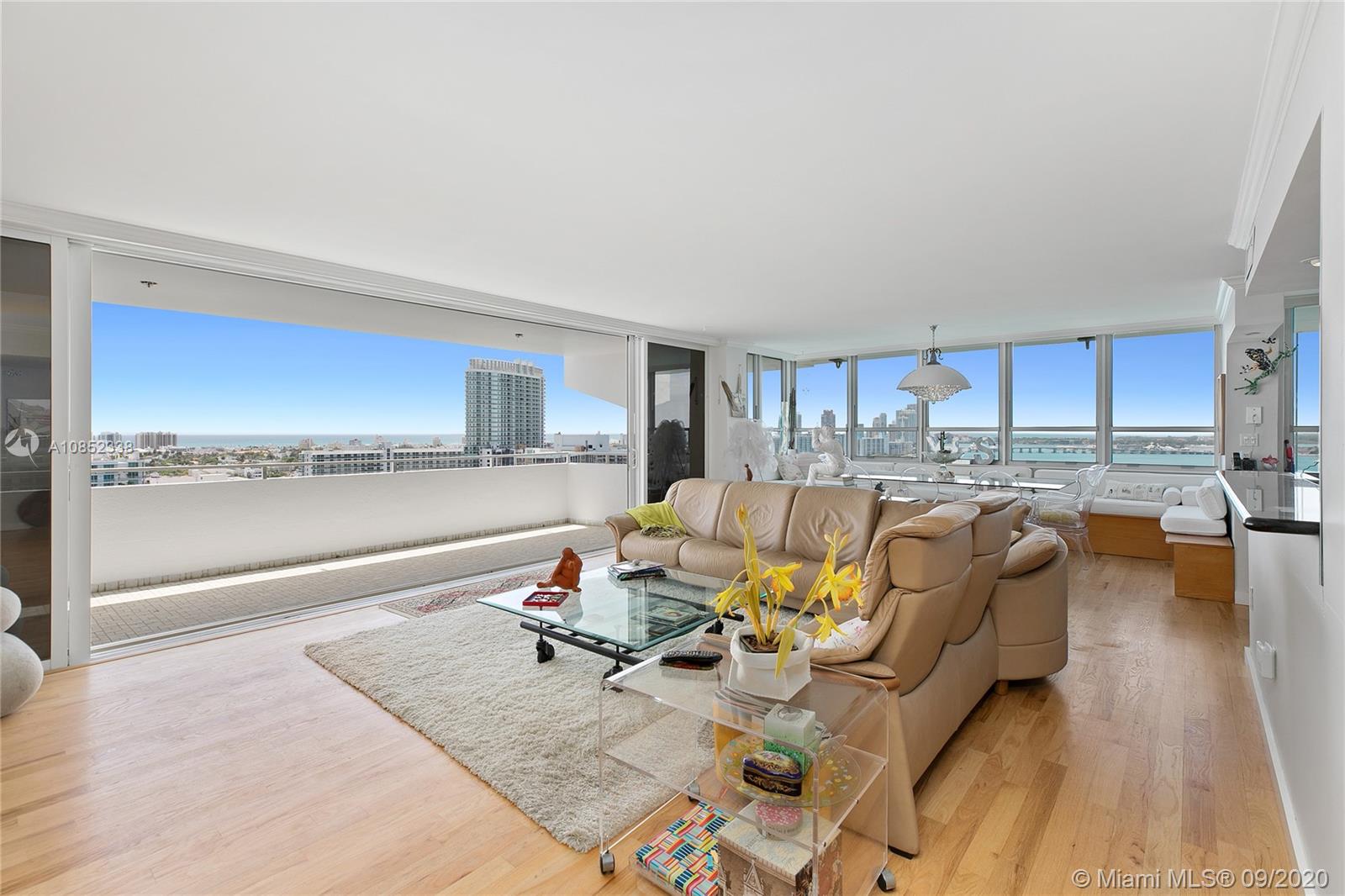 Nothing but clear blue skies, bay views, UNOBSTRUCTED. Take the plunge! Affordable, spacious, and a $tellar location. Impact windows, balcony doors updated so that 4 panels open out to the oversized balcony. Open kitchen, wood floors in living areas, carpet in bedrooms. Big enough to work from home and located just right to play from home. Steps to the best of South Beach-Venetian Causeway, Lincoln Road, beaches, world class dining, shopping, New World Symphony....all minutes from your door. Wynwood, Downtown Miami or the Design District is within 5 miles. Building undergoing renovation, HALLWAYS have begun, NEW elevators up 7 running... perfect time to snag a steal.