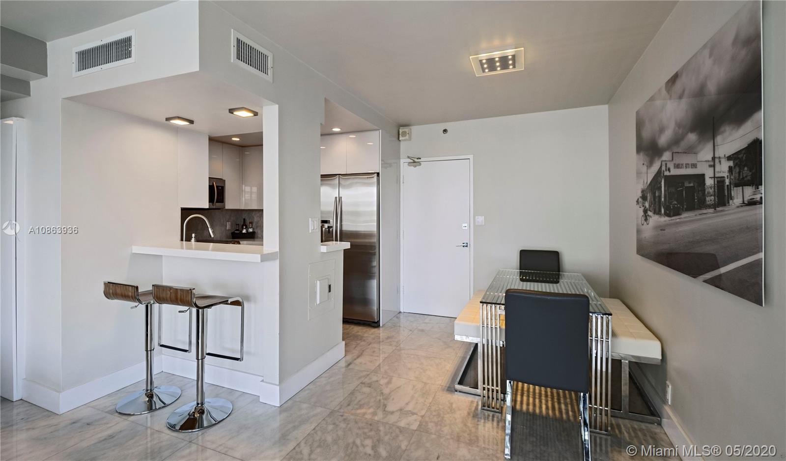 Perfect unit if you value high-end finishes, location and space. Large & bright corner unit at the Mirador North has been completely renovated with top of the line finishes including 24”x24” real marble throughout, quartz countertops, washer/dryer, and stainless steel appliances. Seller just paid a $6,500 special assessment to renovate the building’s hallways. Cable/internet included in the maintenance fee. Owner pays only $50/month for valet parking. Building has impact windows, bay front pool and jacuzzi, valet parking, 24/7 security, a convenience store, and incredible gym. Walking distance to the beach, Lincoln Road mall, Flamingo Park, Whole Foods, Trader Joes, fitness studios & more. Owner financing up to $300,000 of the purchase as low as 5% interest.
