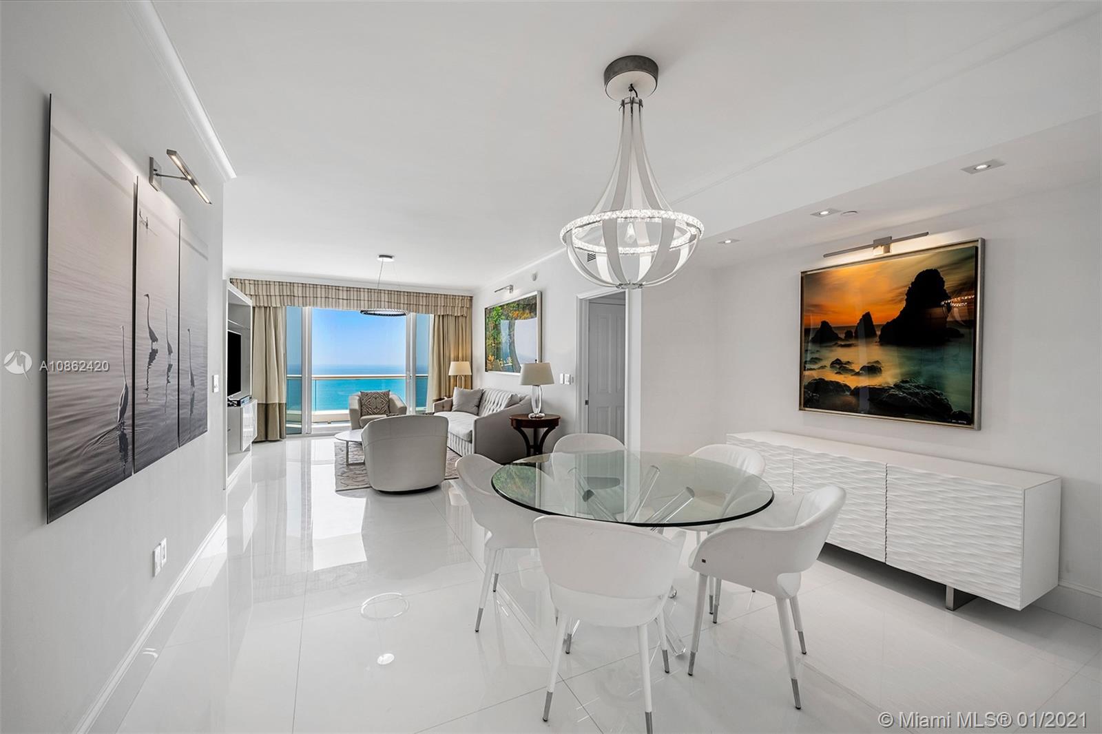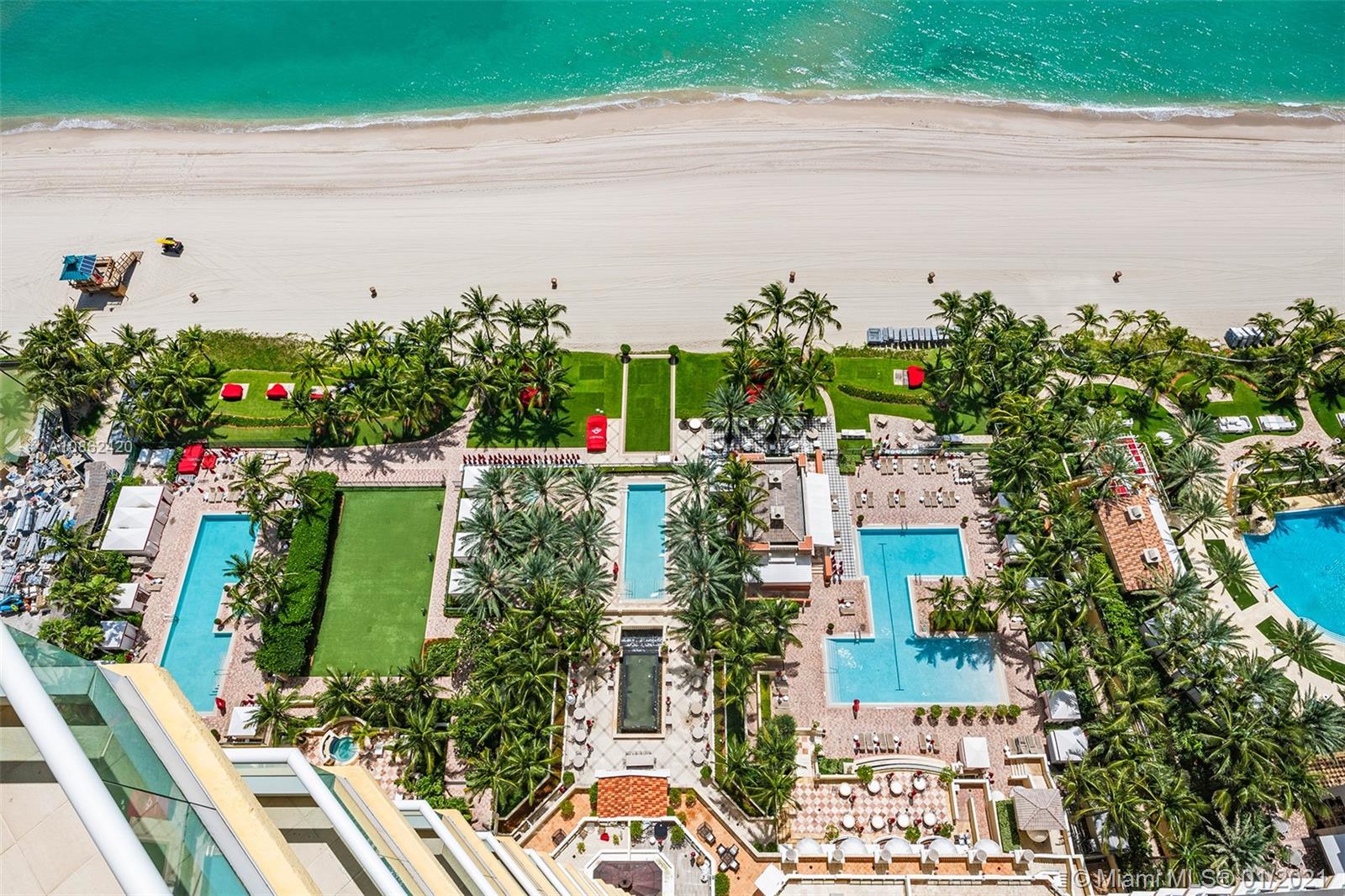 Rarely available 04 model, perfectly situated on the 35th floor at the prized Acqualina Resort & Residences delivers quintessentially elevated living par excellence. This abundantly beautiful refuge in the sky affords a feast for the senses w/ breathtaking ocean, bay & skyline views at every turn. Completely turnkey, the home comes well-appointed w/ everything from a private foyer entry, 2 tantalizing balconies, oversized white porcelain tile flooring w/ mosaic details, light-filled kitchen & bathrooms, quartz countertops, Miele/Subzero appliances, gas range, & professionally selected furnishings. With access to impeccable facilities & a truly divine location, residents enjoy the finest heights of luxurious living.