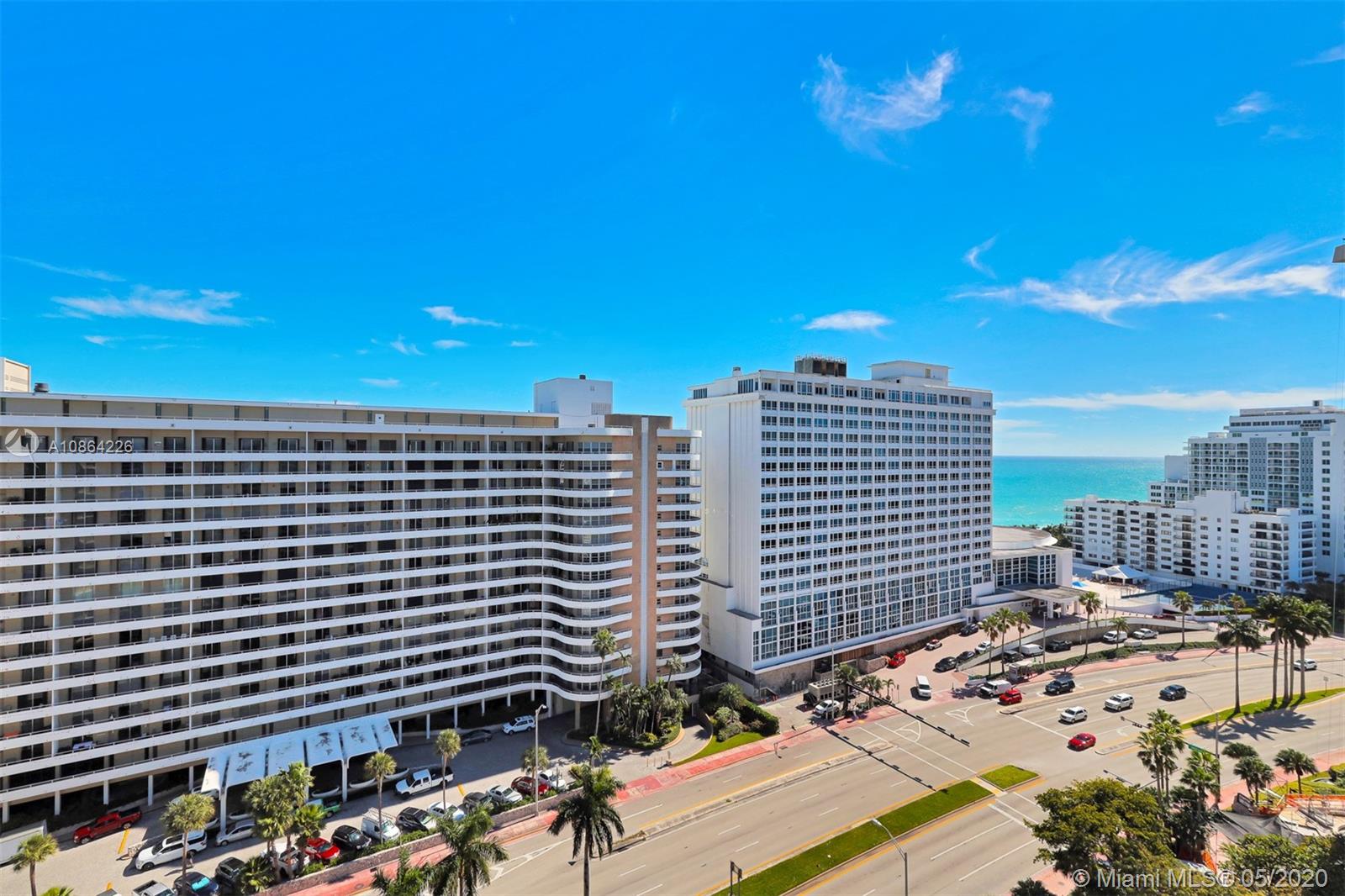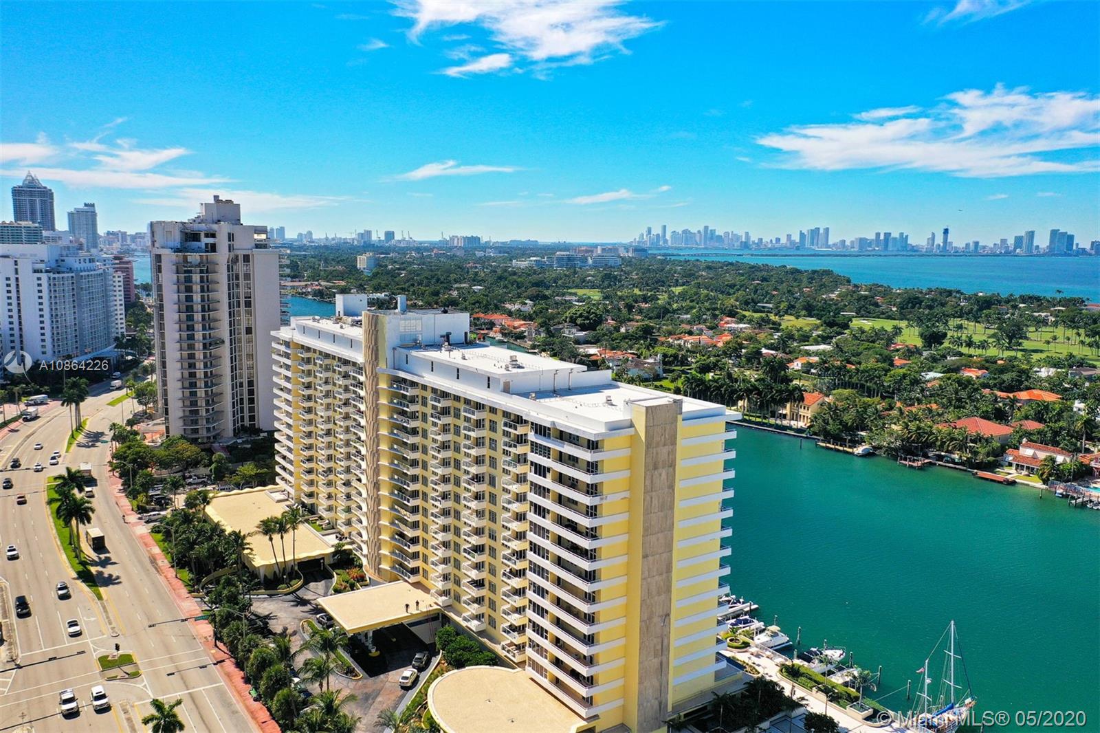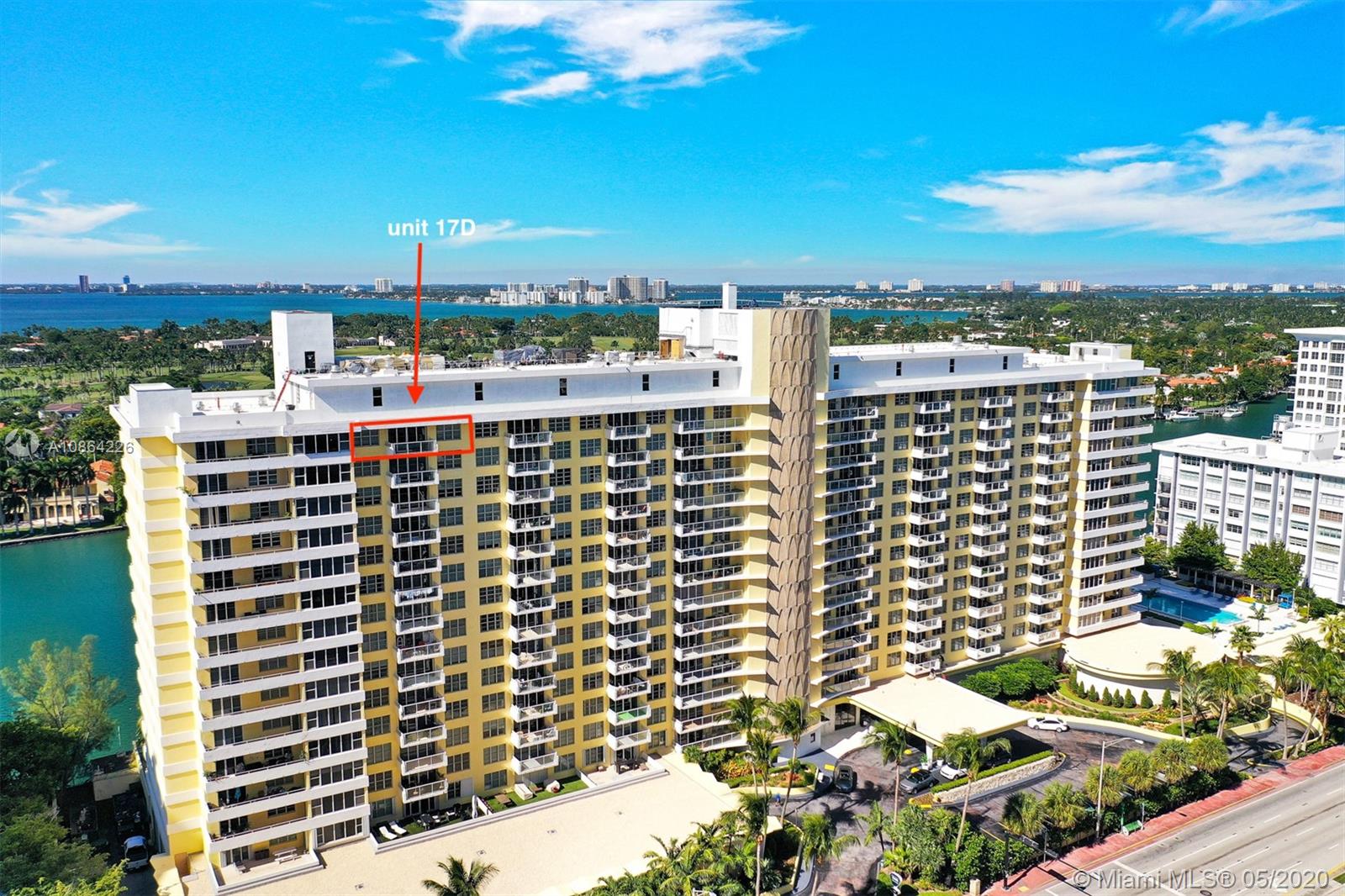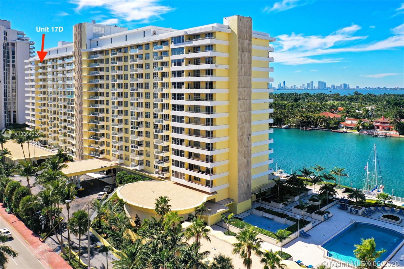 Phenomenal Miami Beach location! Beautiful 17th floor unit is the top floor of this 2/2 split floorplan. In pristine condition, with an updated kitchen, wood and ceramic floor, washer & dryer in the unit. East facing with balcony views overlooking Miami Beach and partial ocean. Located on the intracoastal, across the street from the beach, walking distance to the world famous Fontainebleau Resort, minutes from downtown Miami and South Beach. This gorgeous boutique building is completely updated, incredibly maintained and full service with valet, front desk doorman, private and secure lobby, grounds and covered gated garage. Amenities galore including, fitness center, waterfront pool, boat docks, on-site waterfront restaurant, billiards. Rentals and pets allowed. Easy to show!