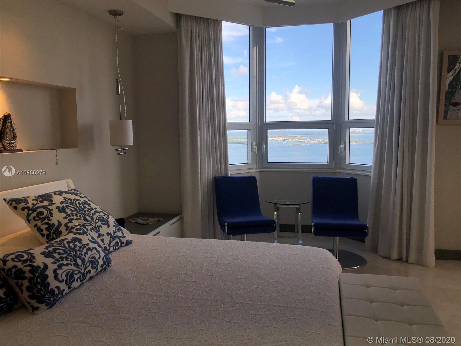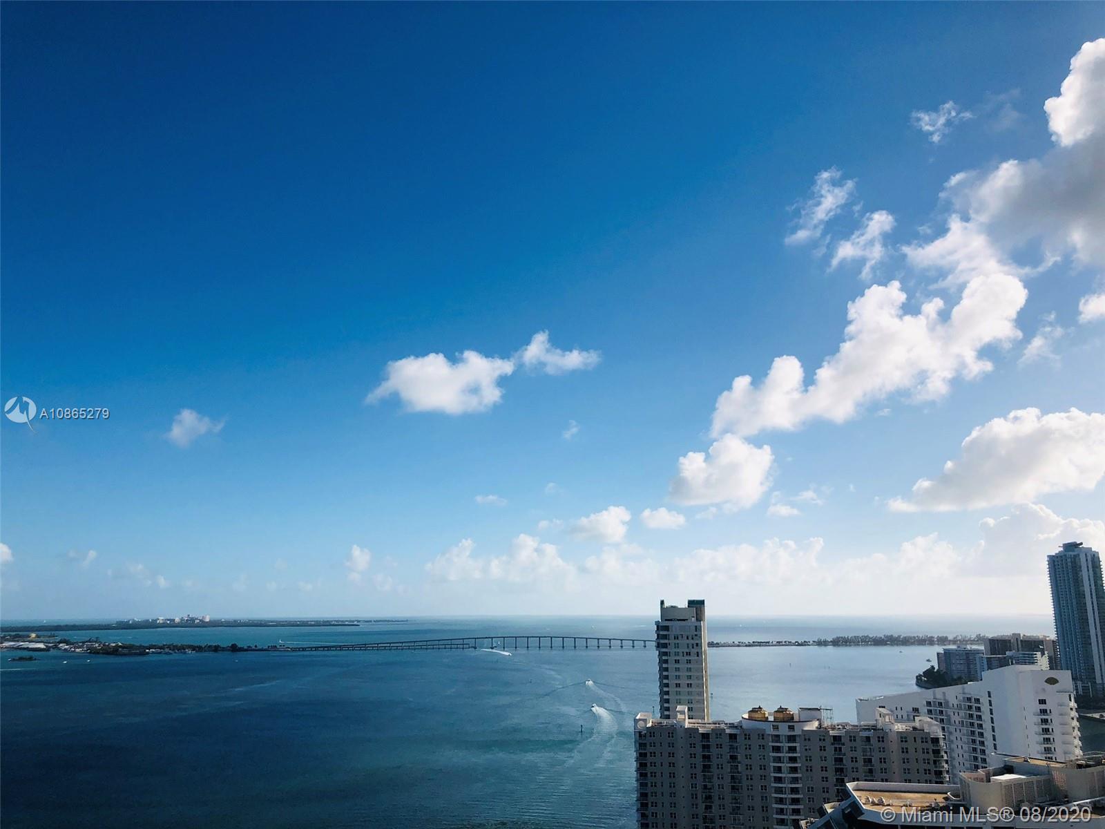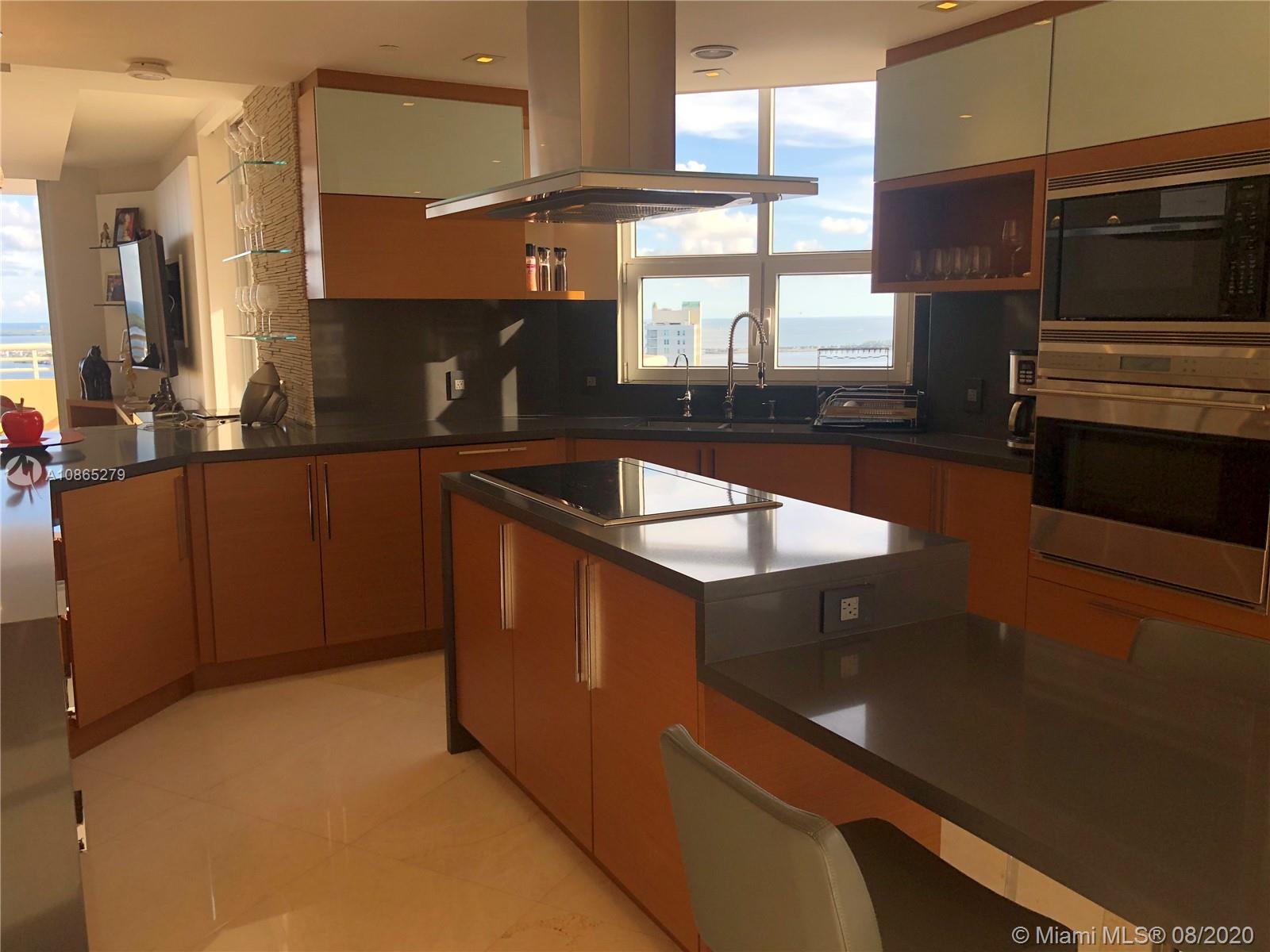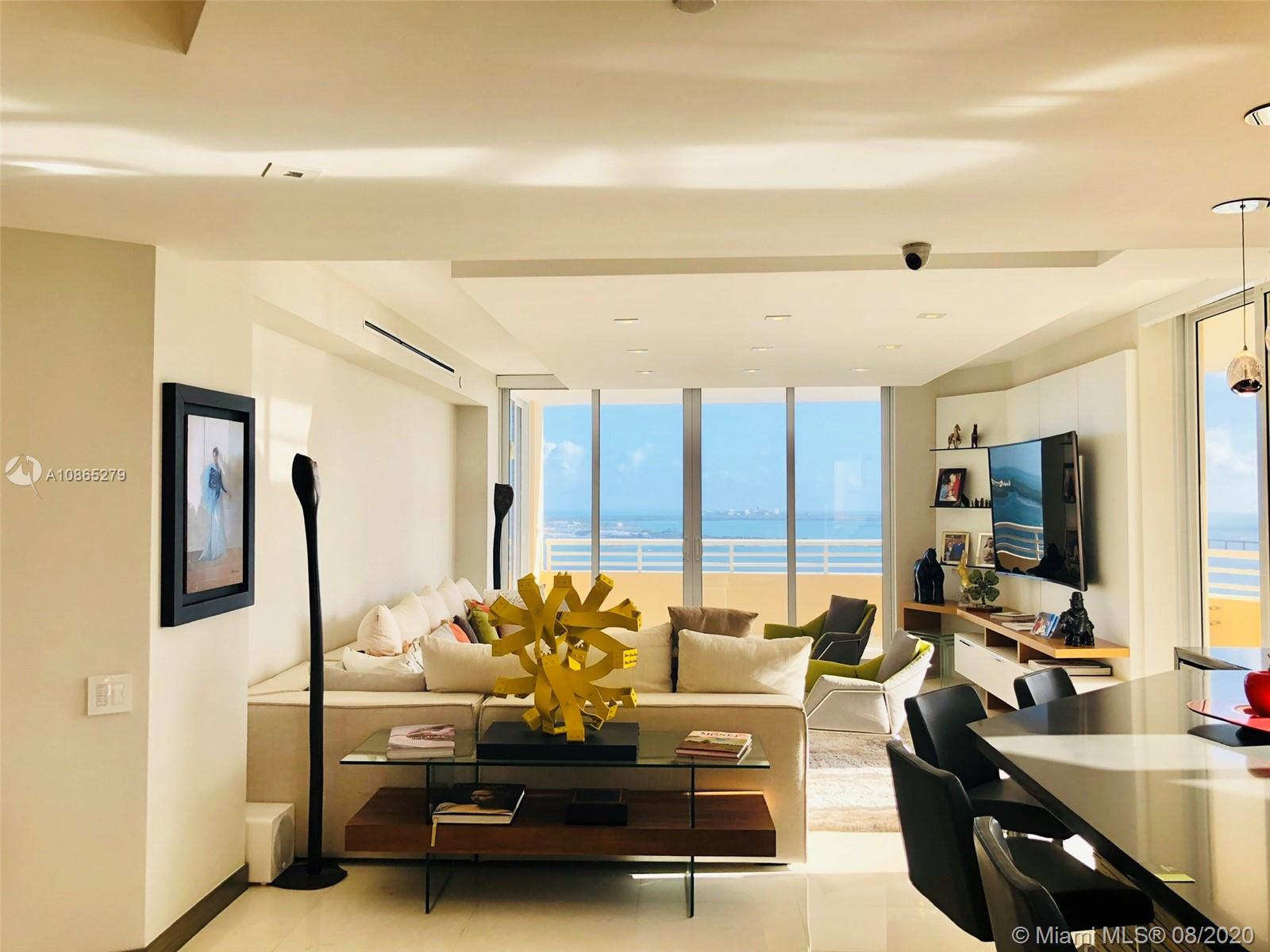 Completely Renovated Corner Unit, 2 bedrooms, 2.5 bath with amazing views of the Bay and Skyline. Apartment was fully remodel including new bathrooms, doors, open kitchen with top of the line appliances, counter-tops, bar, electrical blinds through the apartment, surround sound system, 2 parking spaces, and much more. Building in the prestigious Brickell Key, Two Tequesta recently updated excellent 2 floor gym, barbeque area, pool, tennis court and more. Must see
