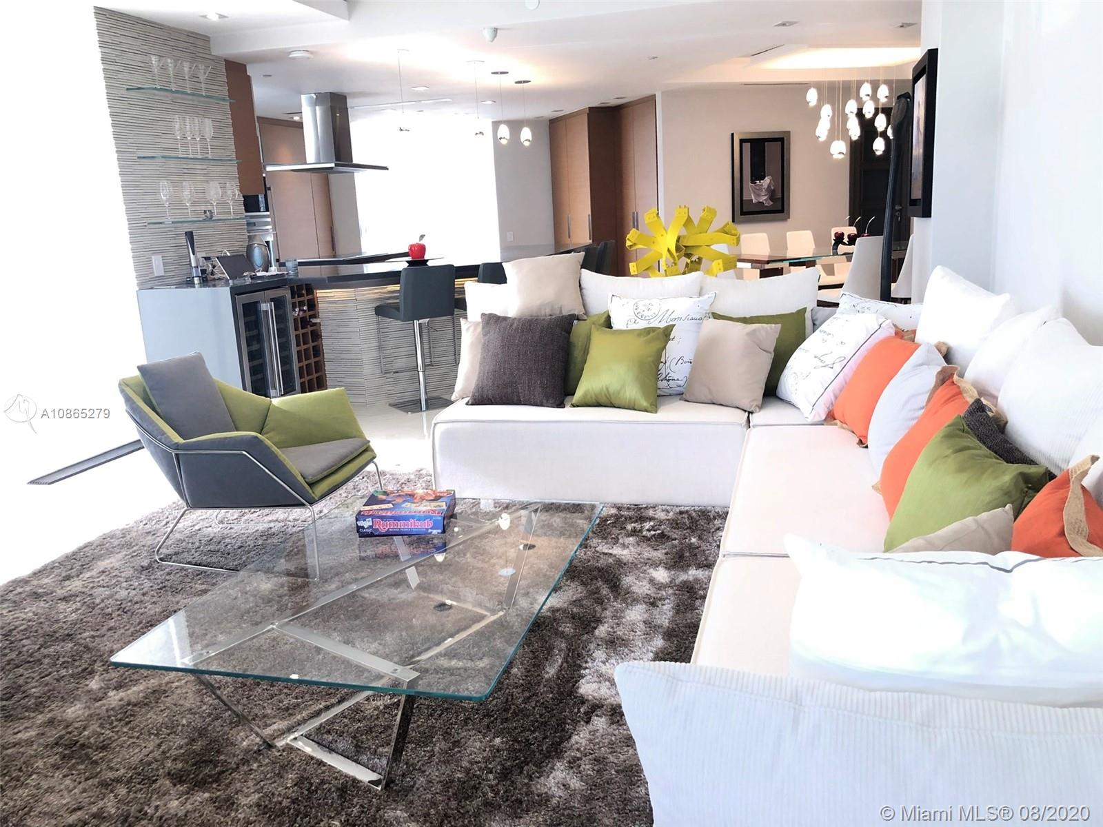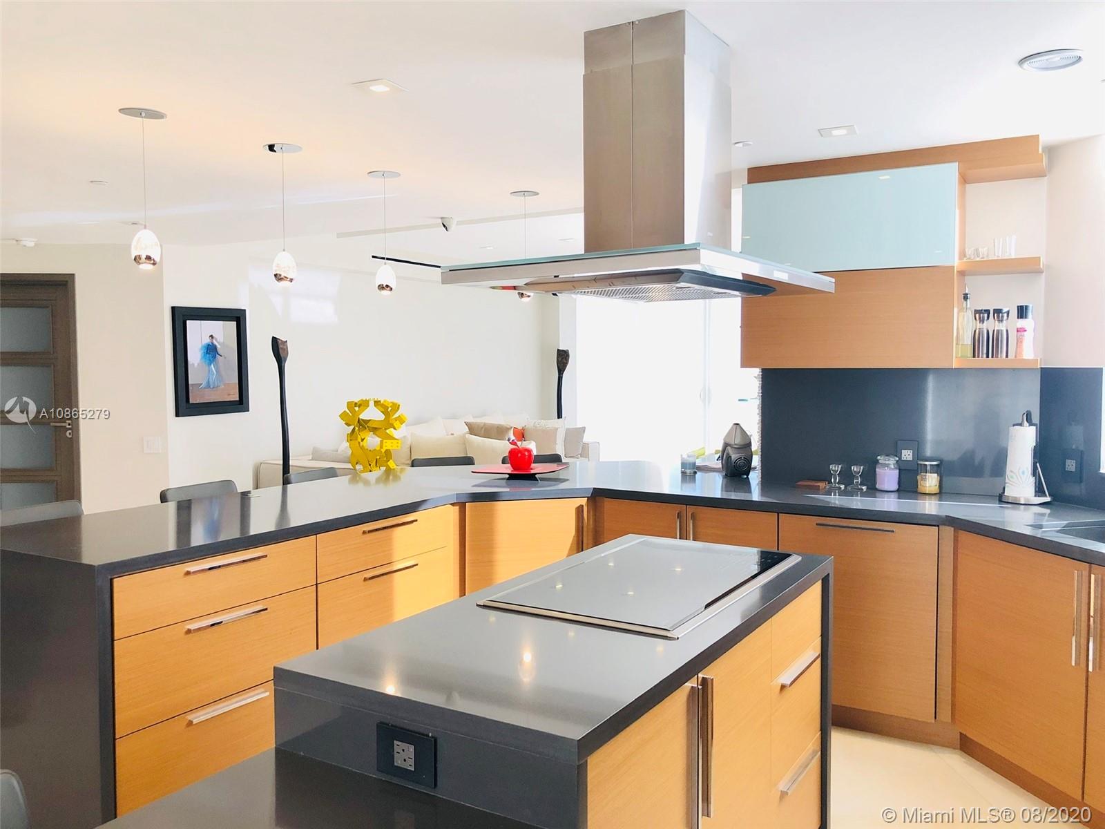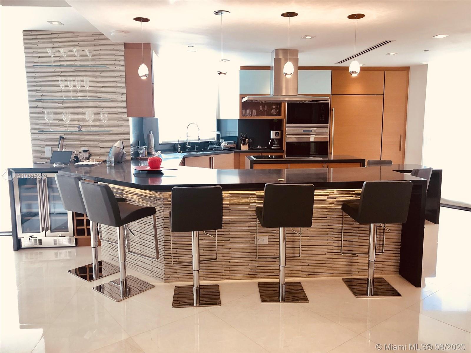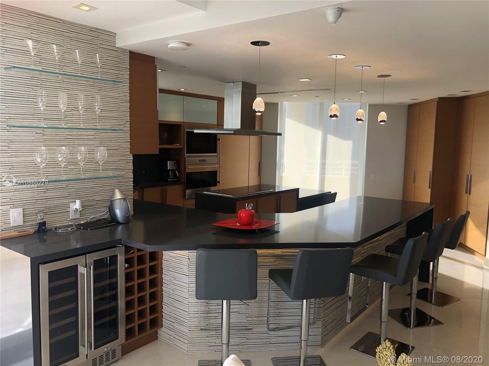 Completely Renovated Corner Unit, 2 bedrooms, 2.5 bath with amazing views of the Bay and Skyline. Apartment was fully remodel including new bathrooms, doors, open kitchen with top of the line appliances, counter-tops, bar, electrical blinds through the apartment, surround sound system, 2 parking spaces, and much more. Building in the prestigious Brickell Key, Two Tequesta recently updated excellent 2 floor gym, barbeque area, pool, tennis court and more. Must see